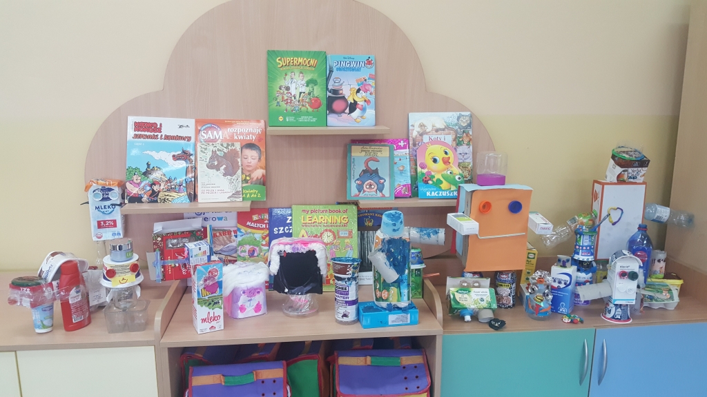 Uczniowie klasy I podczas zajęć kształtują  postawę świadomego konsumenta oraz umiejętności efektywnego gospodarowania odpadami. Podczas zajęć uczniowie mogli poznać sposoby ograniczenia ilości odpadów, zasady segregacji oraz rolę recyklingu.  Na zajęciach plastycznych dzieci wykonywały prace plastyczne z wykorzystaniem surowców wtórnych. Prace były bardzo oryginalne, pomysłowe, z wykorzystaniem różnorodnych odpadów / pudełek, butelek, kapsli/ uzupełnionych materiałami plastycznymi. Widać było duże zaangażowanie w każdą pracę oraz kreatywność w wybranych środkach wyrazu. Każde dziecko stworzyło swojego wyspecjalizowanego robota. Prace prezentowały się imponująco.