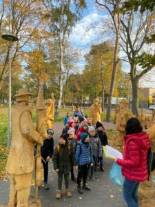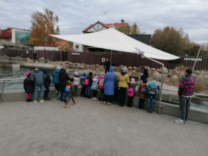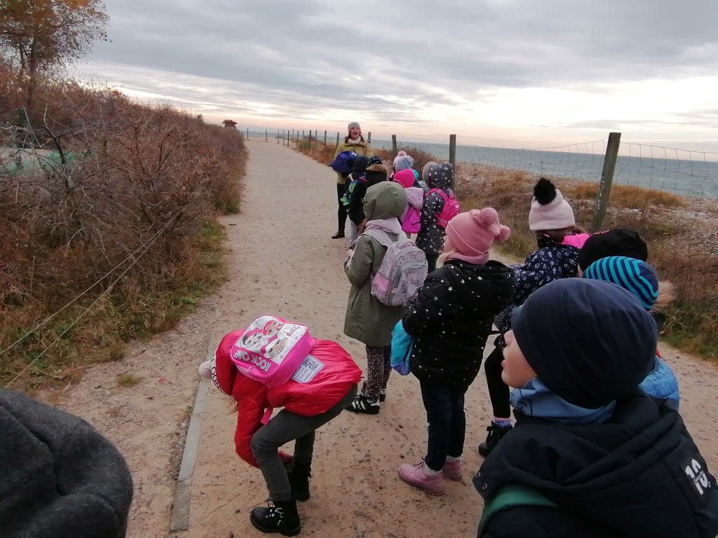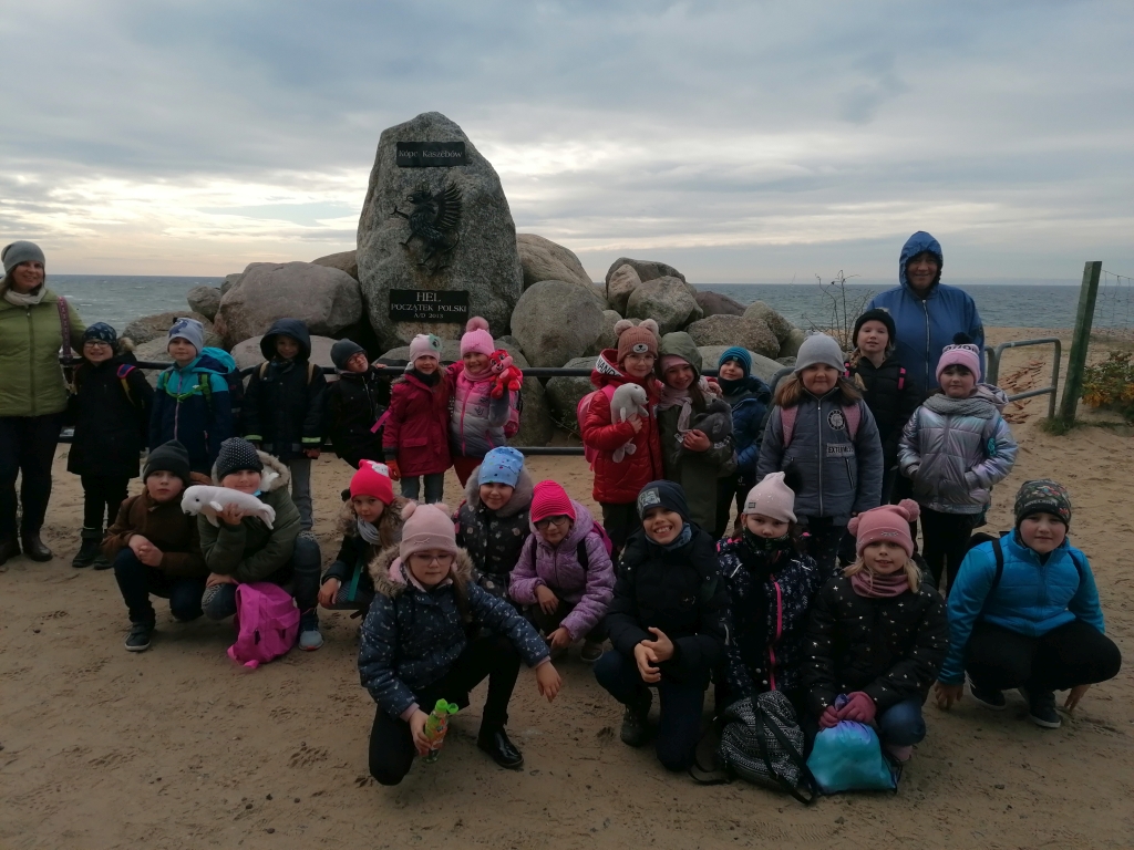 26 października 2021 roku uczniowie klasy 1 a i 1 b wybrali się na wycieczkę szkolną nad Morze Bałtyckie do Helu. Przejeżdżając przez Mierzeję Helską, podziwialiśmy jej walory przyrodnicze i krajobrazowe. Spacer po Helu rozpoczęliśmy od Galerii Rzeźby Kaszubskiej, w której mieliśmy okazję zobaczyć m.in. ilustrację wiersza „Rzepka” Juliana Tuwima – rzeźba została wpisana do Księgi Rekordów Guinnessa. Następnie udaliśmy się pod pomnik Obrońców Helu, aby oddać hołd Obrońcom Wybrzeża. Potem poszliśmy do fokarium Stacji Morskiej Instytutu Oceanografii Uniwersytetu Gdańskiego. Uczniowie wzięli udział w zajęcia teoretycznych i praktycznych: prezentacje o podstawowych organizmach morskich spotykanych w Morzu Bałtyckim. Podczas pokazów, foki prezentowały swoje wdzięki, wskakiwały na brzeg, prezentowały swoje umiejętności, grając w piłkę. Karmienie fok połączone było z treningiem medycznym, podczas którego instruktorzy sprawdzali stan zdrowia fok oraz zapoznali uczestników pokazów z historią życia tych zwierząt, sposobami odżywiania, ich dietę, wiek, trasy wędrówek, najważniejszymi zagrożeniami i przyczynami śmierci, oraz problemami ochrony przyrody Bałtyku.