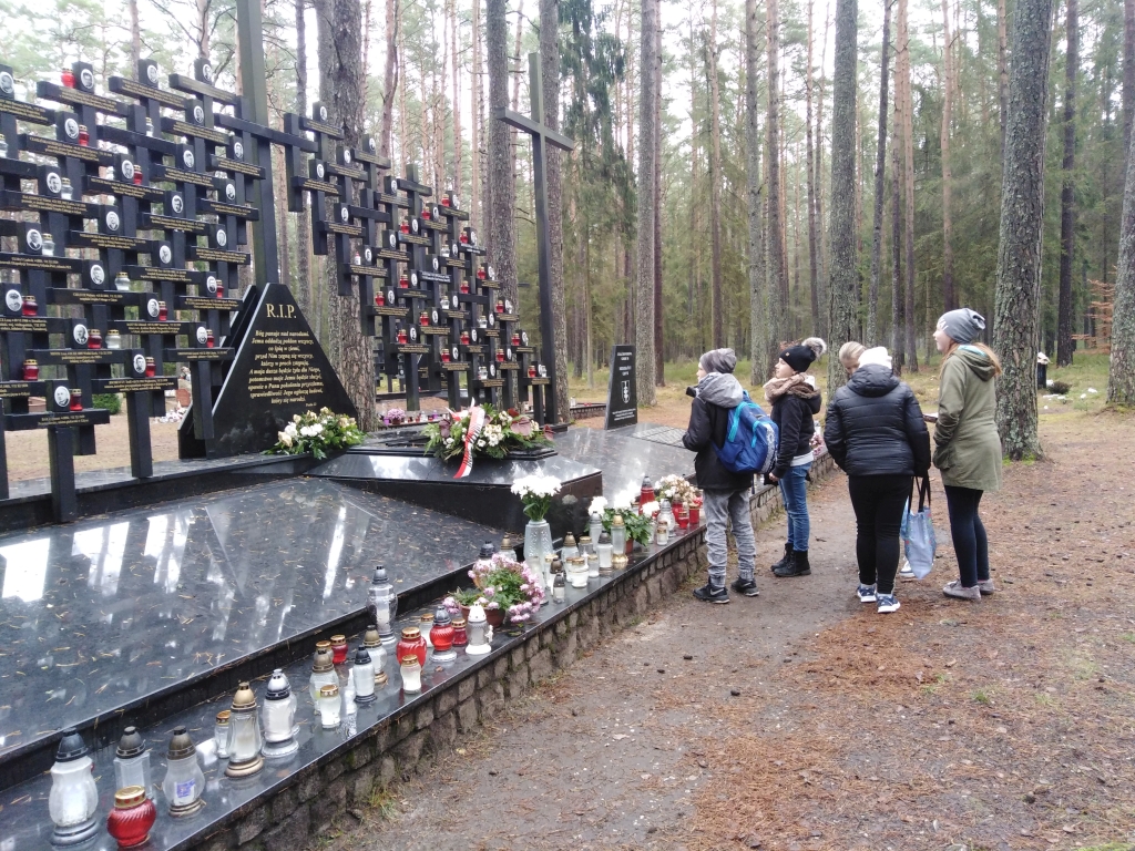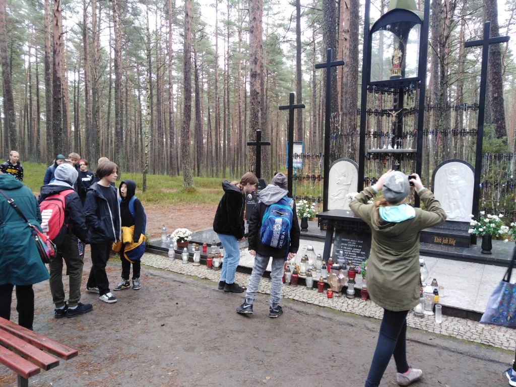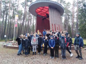 Listopad jest miesiącem, który w szczególny sposób skłania do refleksji i wspomnień o tych, którzy odeszli na zawsze. To również czas pamięci o trudnej historii naszego kraju i regionu. 9 listopada uczniowie z klas siódmych oraz z klasy szóstej odwiedzili jedno z największych miejsc kaźni na Pomorzu w okresie II wojny światowej – las piaśnicki. To właśnie tam na przełomie października i listopada 1939 roku rozpoczęły się masowe egzekucje lokalnej ludności.
