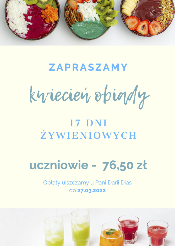 • Zapraszamy na szkolne obiady