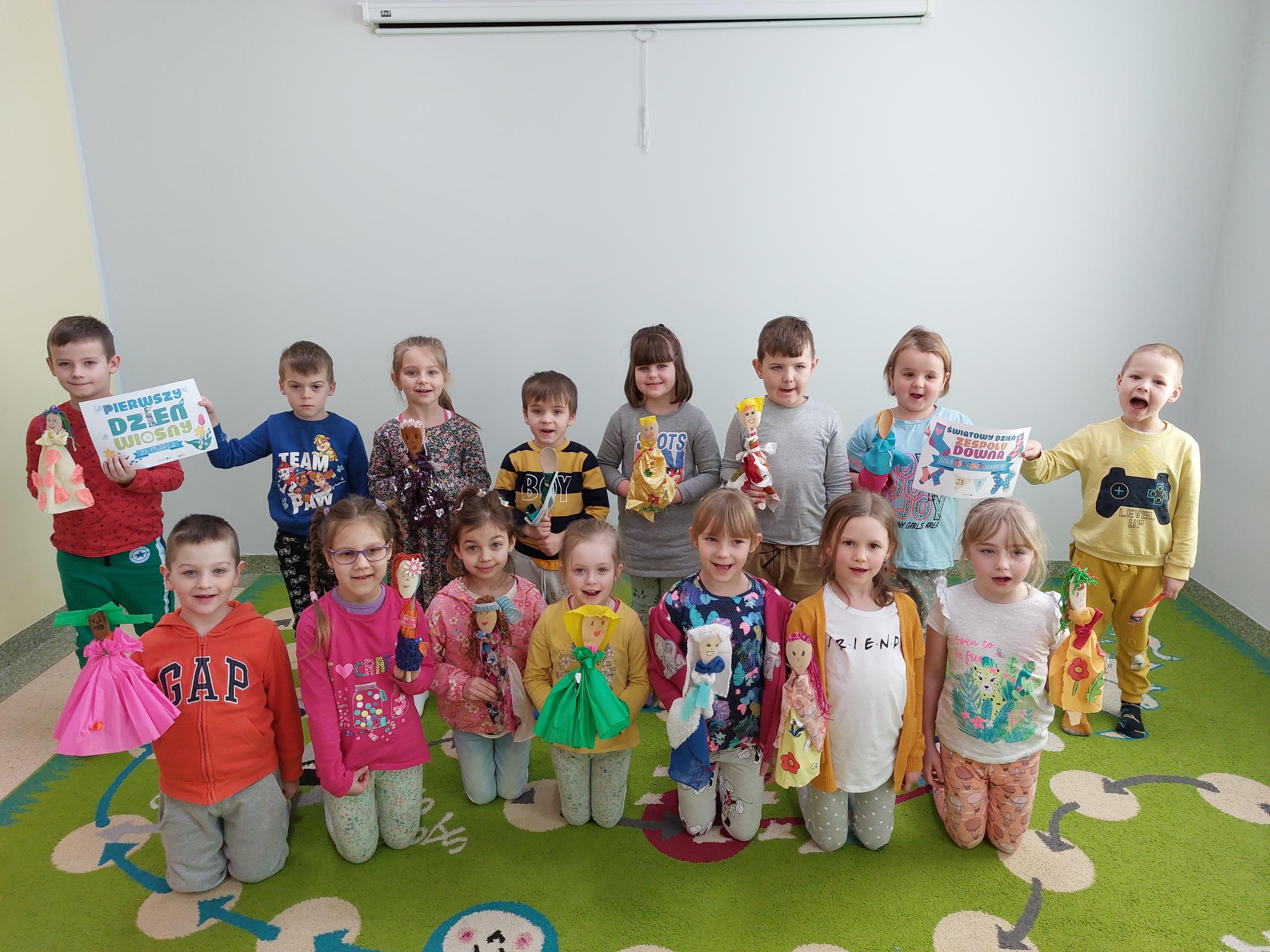 Tego dnia dzieci wykonały kukiełki Pani Wiosny oraz uroczyście ją przywitały. Dodatkowo z okazji Światowego Dnia Zespołu Downa dowiedziały się nie tylko czym jest Zespół Downa, ale także poznały problemy z jakimi borykają się inne niepełnosprawne osoby. Rozmawialiśmy na temat odmienności, niepełnosprawności, tolerancji i akceptacji.