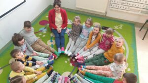 21 marca dzieci z oddziału przedszkolnego obchodziły dwa święta: PIERWSZY DZIEŃ WIOSNY oraz DZIEŃ KOLOROWEJ SKARPETKI.