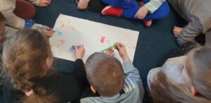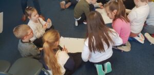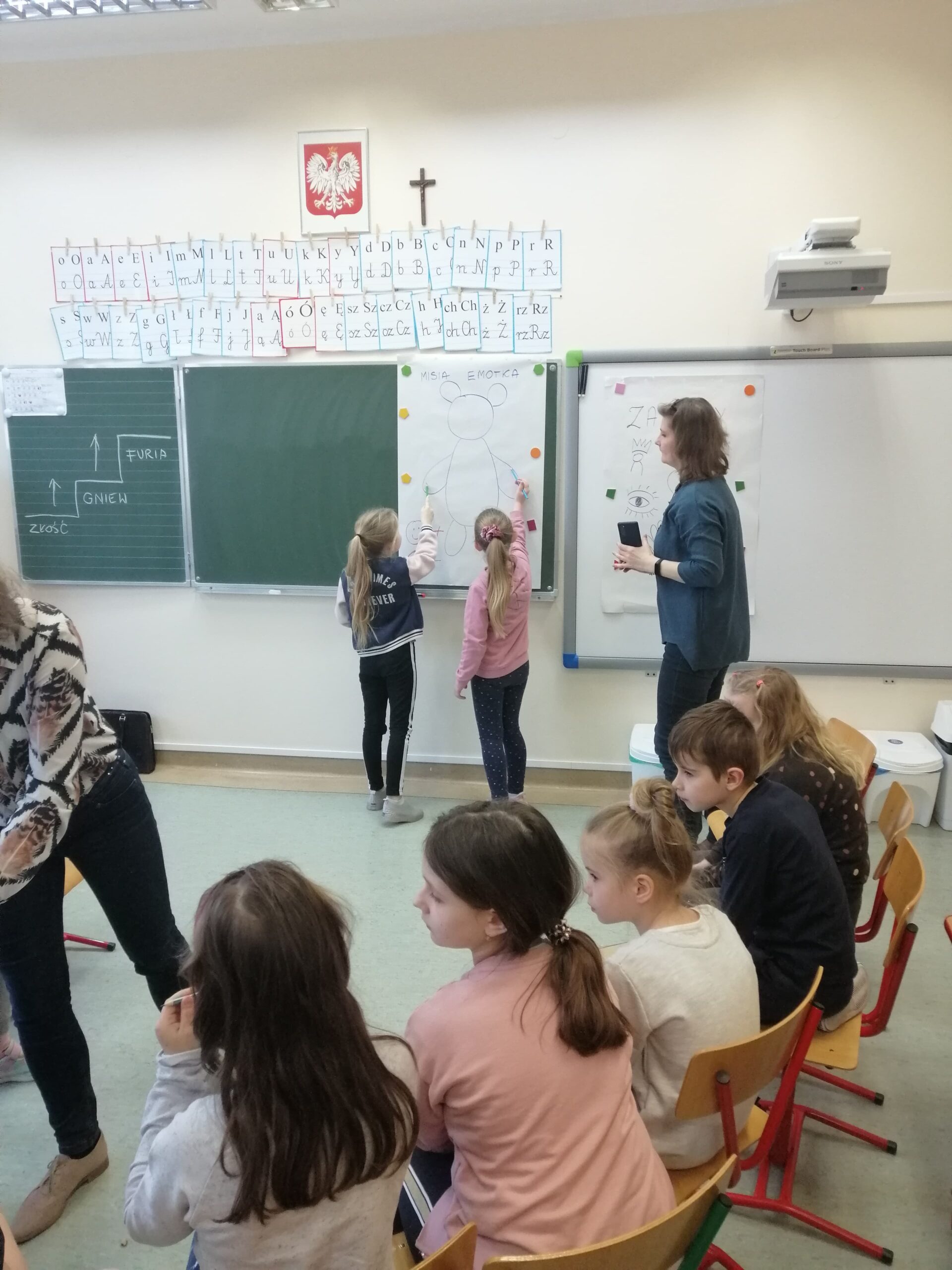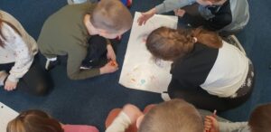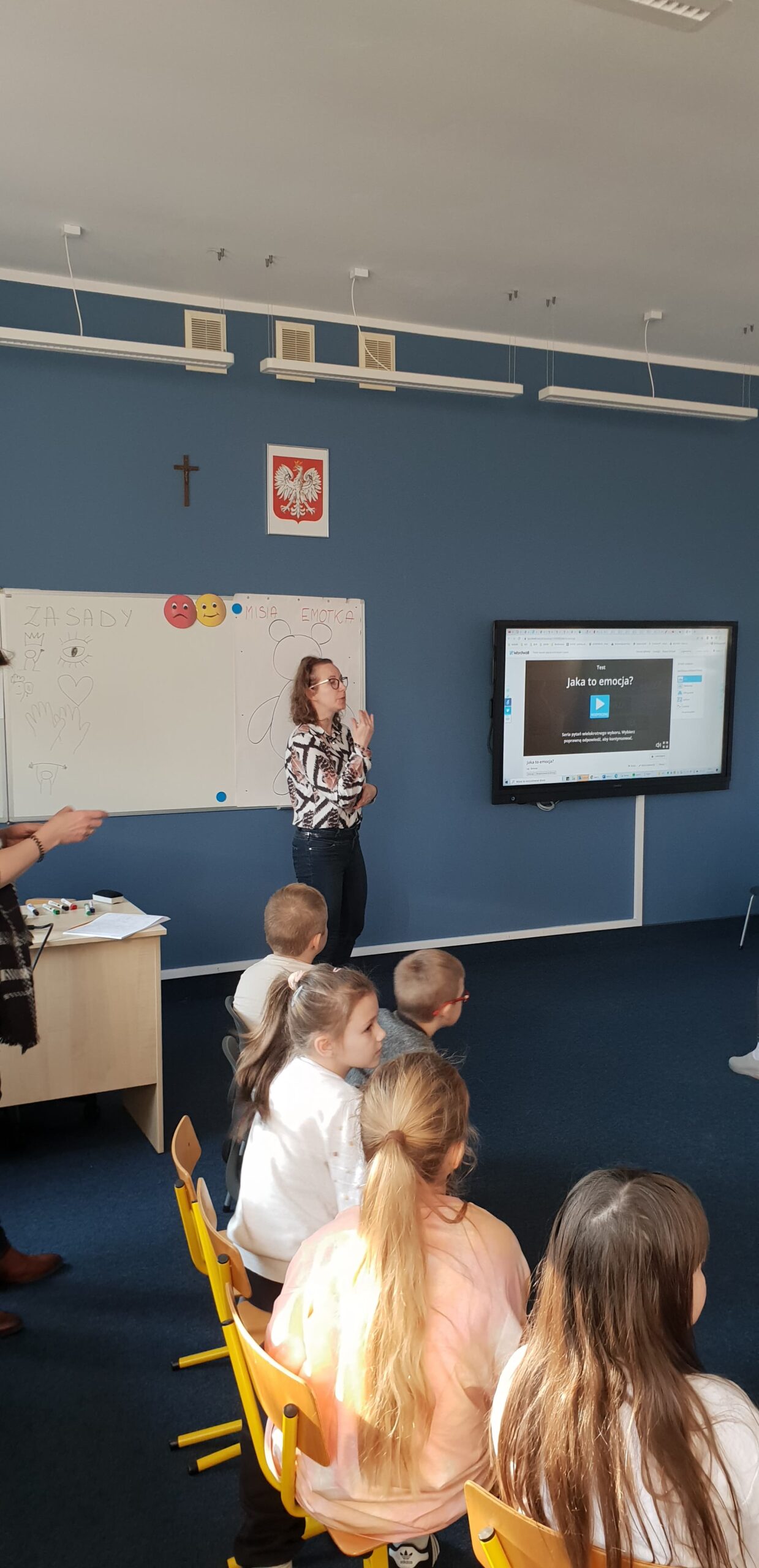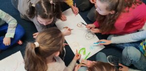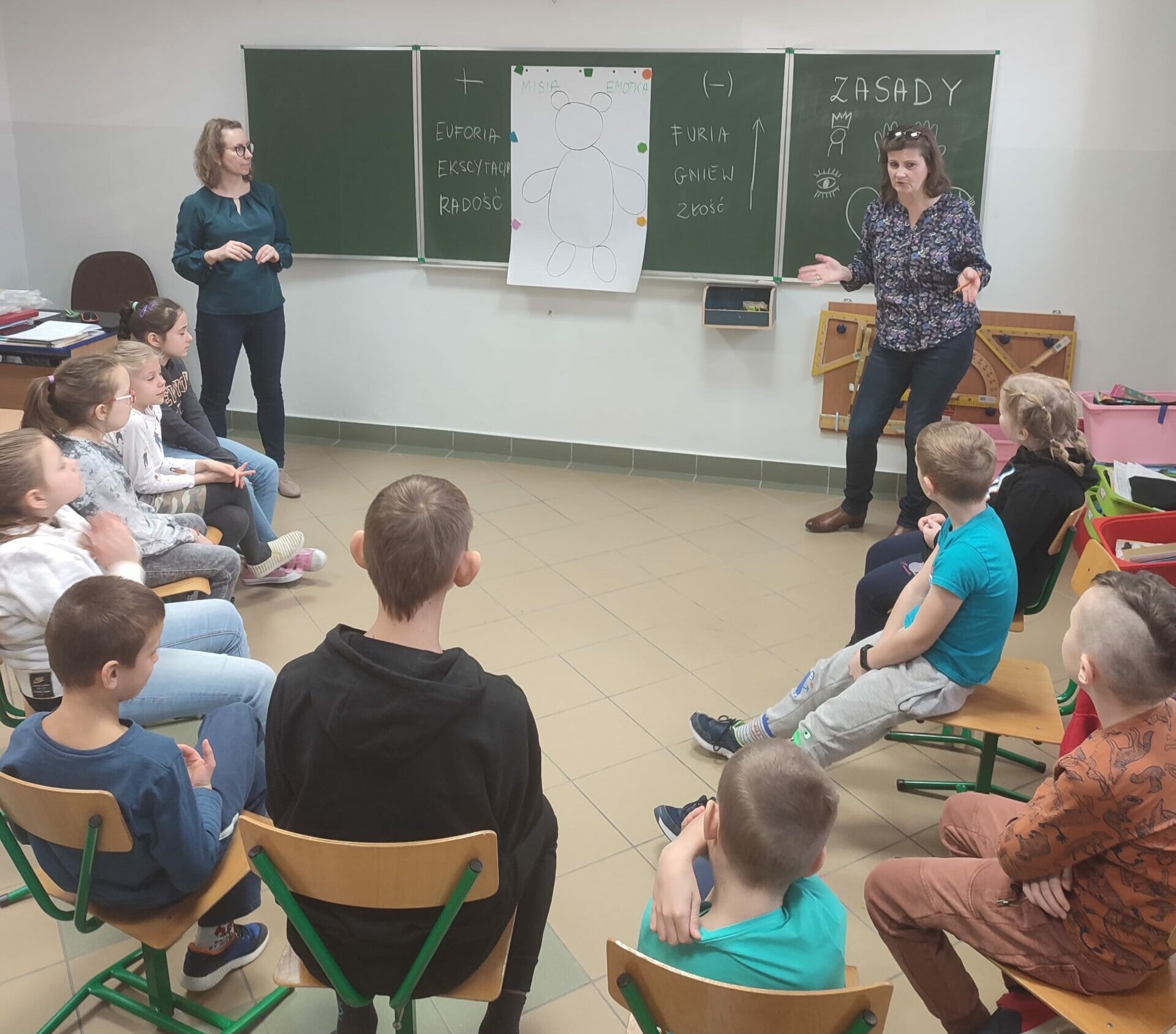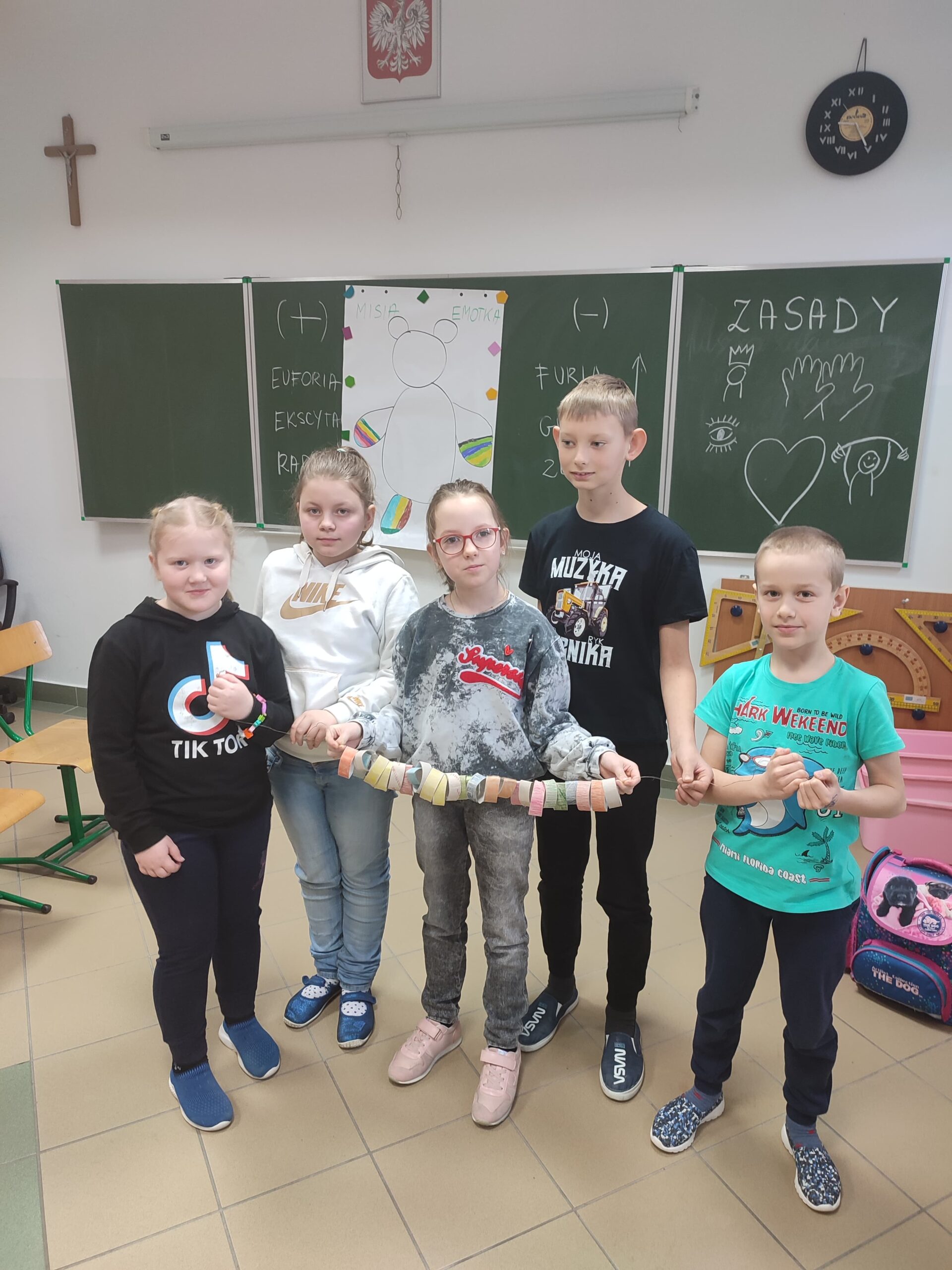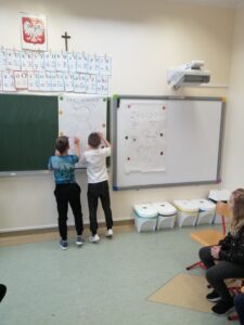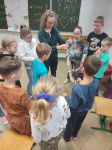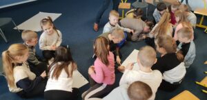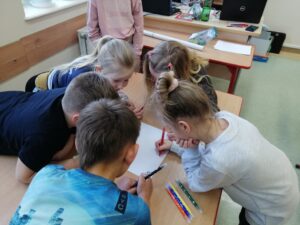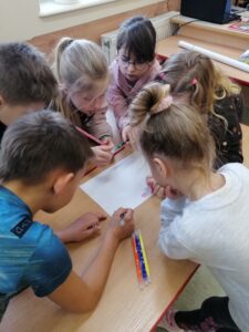 Podczas warsztatów klasowych ,,Emocje, a relacje. Jak się lepiej komunikować z rówieśnikami i dorosłymi, dbając o swoje emocje.’’ uczniowie doskonalili umiejętność rozpoznawania emocji na podstawie wyrazu twarzy, rozwijali umiejętność ich nazywania, a także przypomnieli sobie sposoby radzenia sobie w sytuacji, gdy trudne emocje biorą górę. Wszystkie powierzone im zadania wykonywali zgodnie z zasadami właściwej współpracy w grupie.