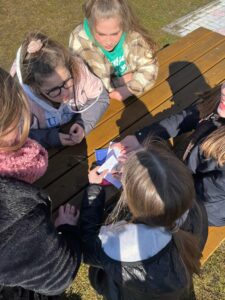 Klasa VIII w ostatnich dniach przygotowała projekt z języka niemieckiego w ramach zajęć „outdoor education”. Zadanie polegało na znalezieniu skarbów na podstawie mapy i opisu w języku niemieckim. Dzięki edukacji w plenerze uczniowie samodzielnie zdobywali wiedzę i utrwalali umiejętności porozumiewania się w języku obcym poprzez praktyczne działanie.