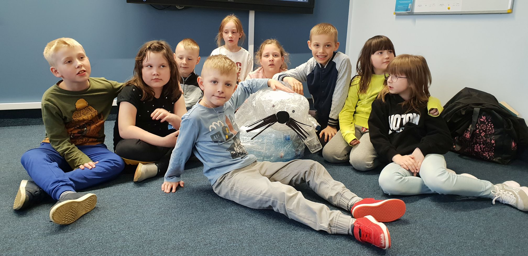 W dniu 5 maja br. uczniowie klasy 1a wzięli udział w zajęciach edukacyjnych w ramach Ogólnopolskiego Projektu „Filtrujemy dla Bałtyku”. Bohaterką działań edukacyjnych została foczka o imieniu Britka adoptowana przez markę Brita. Uczniowie z zaciekawieniem poznali ambasadorkę akcji, która nieszablonowo przybliżyła główne zagrożenia morskiego świata. W trakcie lekcji dowiedzieli się o niekorzystnym wpływie śmieci na organizmy żyjące w morzu. W ramach pomocy Britce dzieci z pomocą babci jednej z uczennic wykonały ekorzeźbę z plastikowych butelek „Dla czystego Bałtyku”.