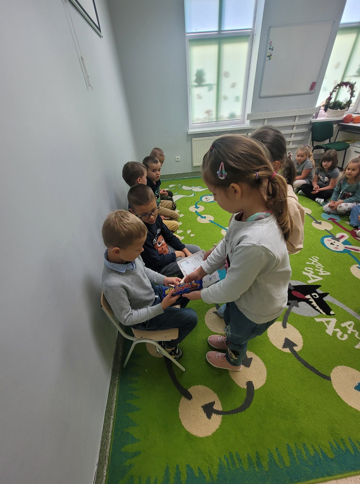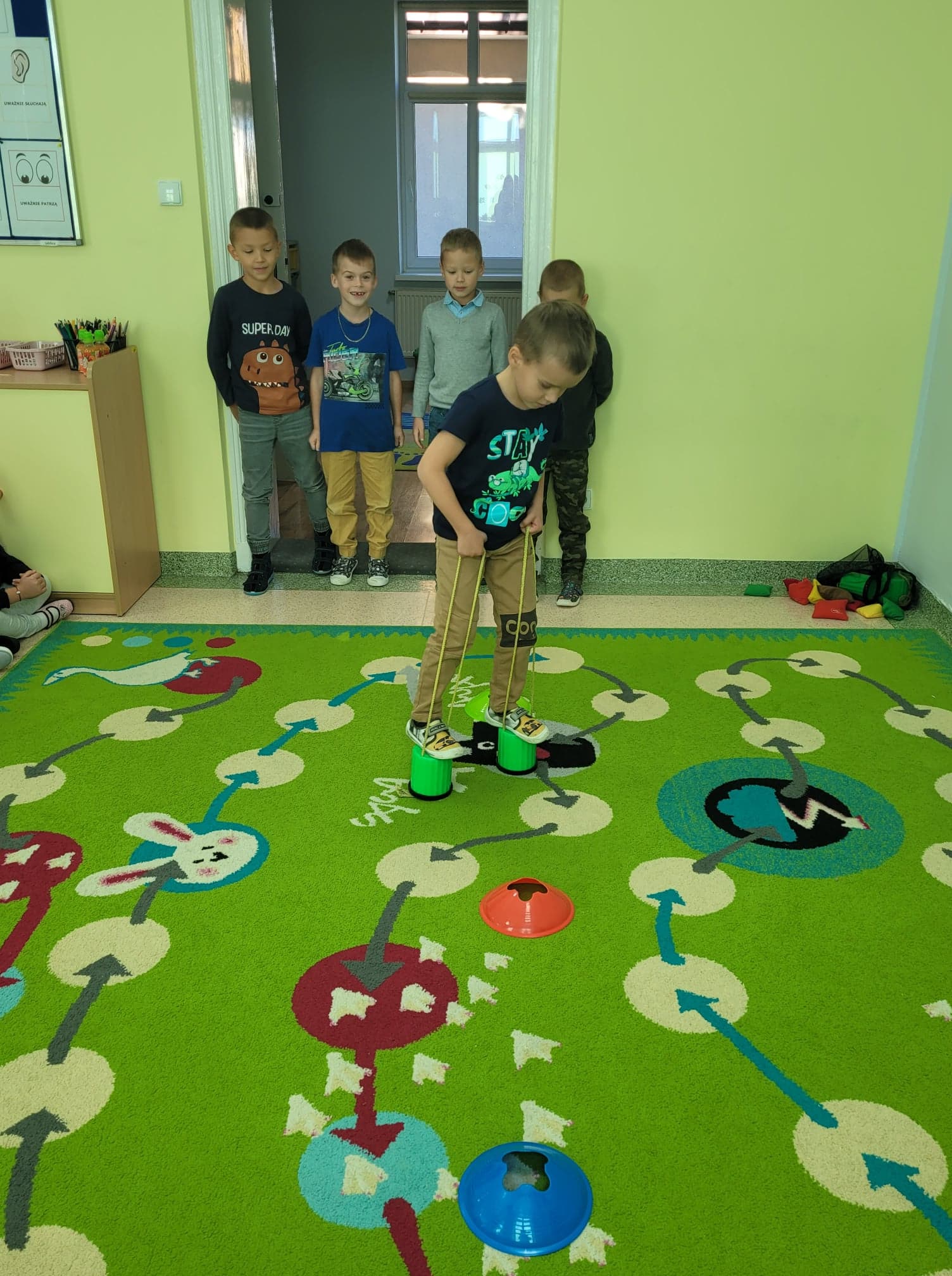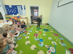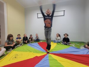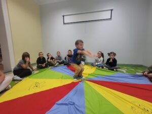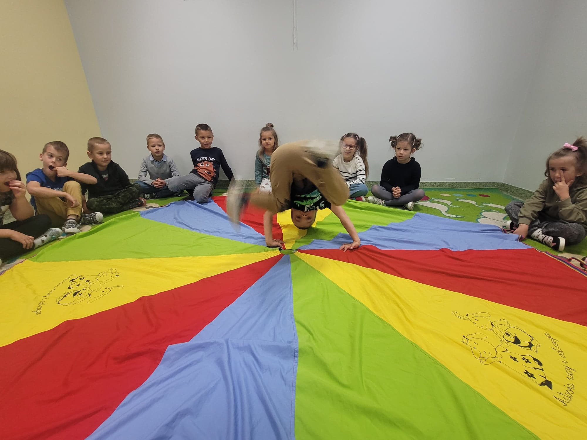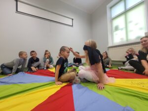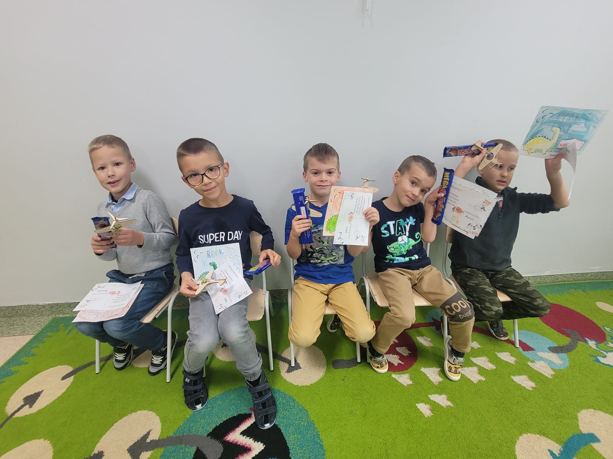 Z okazji Dnia Chłopaka w oddziale przedszkolnym odbyły się zawody sportowe. Udział wzięli wszyscy chłopcy i chętnie wykonywali postawione przed nimi zadania. Wzięli oni także udział w zabawach ruchowych z wykorzystaniem chusty animacyjnej. Na zakończenie chłopcy otrzymali dyplomy, upominki oraz ich portrety narysowane przez koleżanki z grupy.