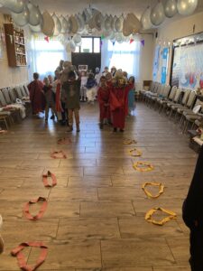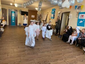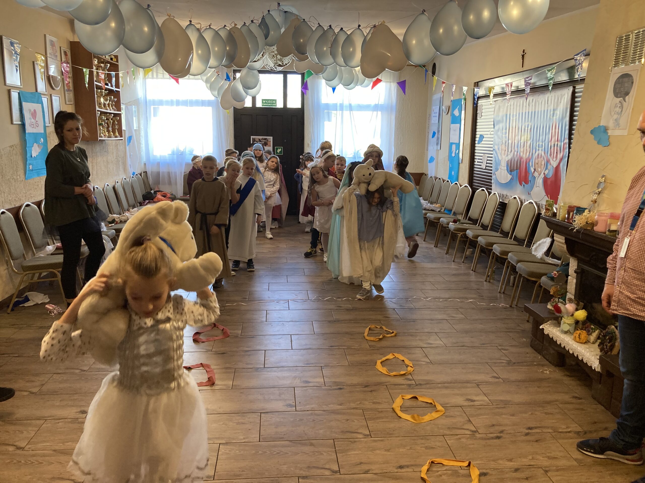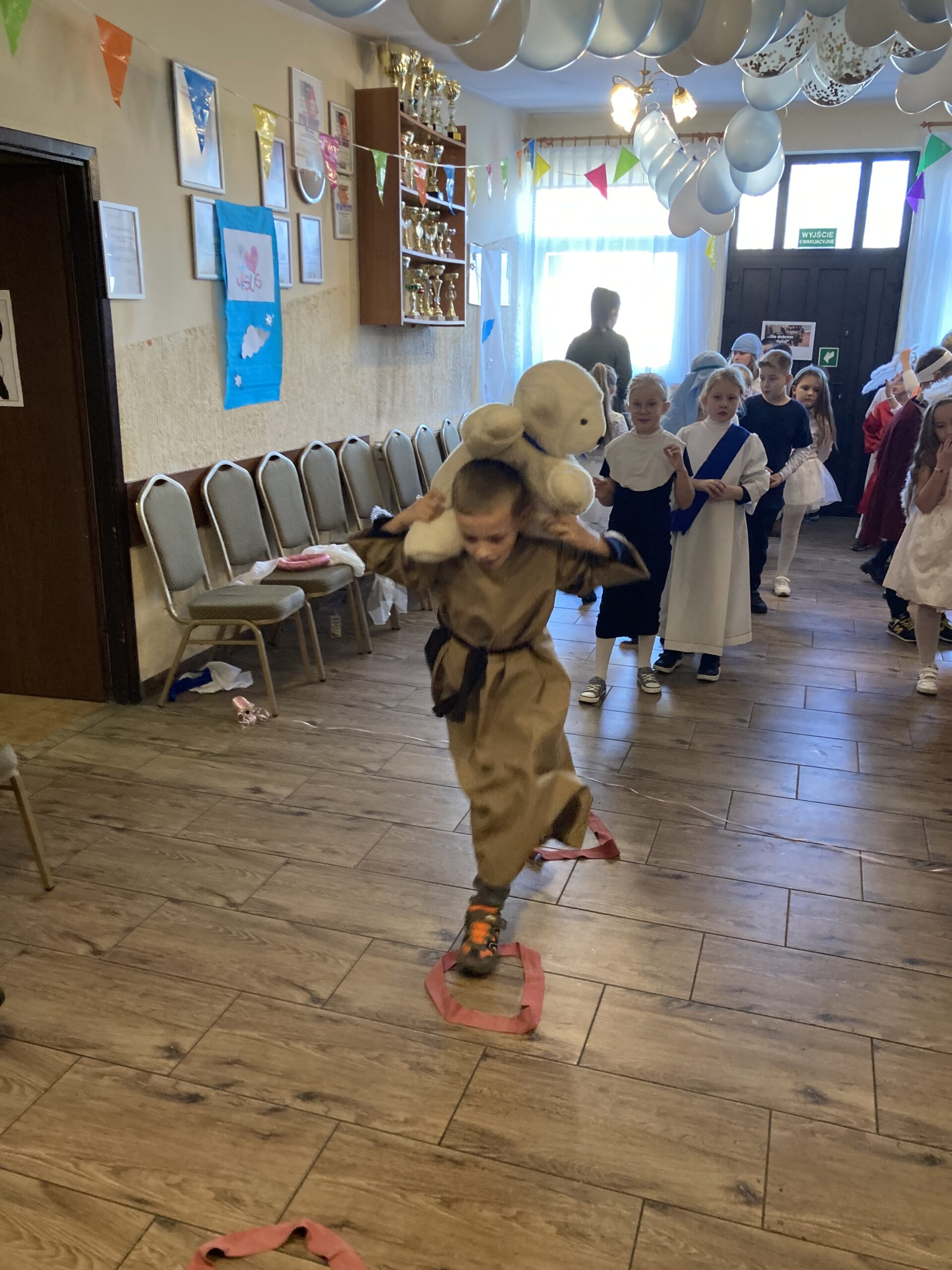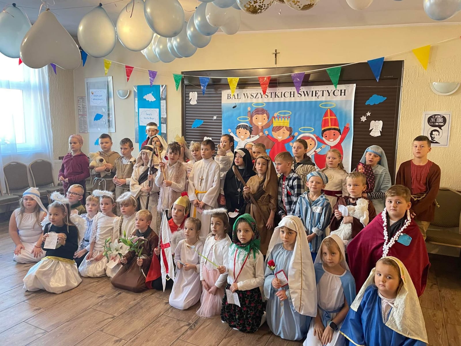 Zadaniem uczniów było przygotowanie stroju wybranej osoby świętej i jej atrybutu. Dzięki wsparciu Rodziców uczniowie wyglądali jak prawdziwi święci. Nasz bal odbył się Wiejskim Klubie Kultury w Darzlubiu przy współpracy i zaangażowaniu p. Moniki Szewka. Jak na prawdziwy bal przystało nie zabrakło tańców, śpiewów oraz zabaw i wspaniałego słodkiego poczęstunku przygotowanego przez Rodziców.