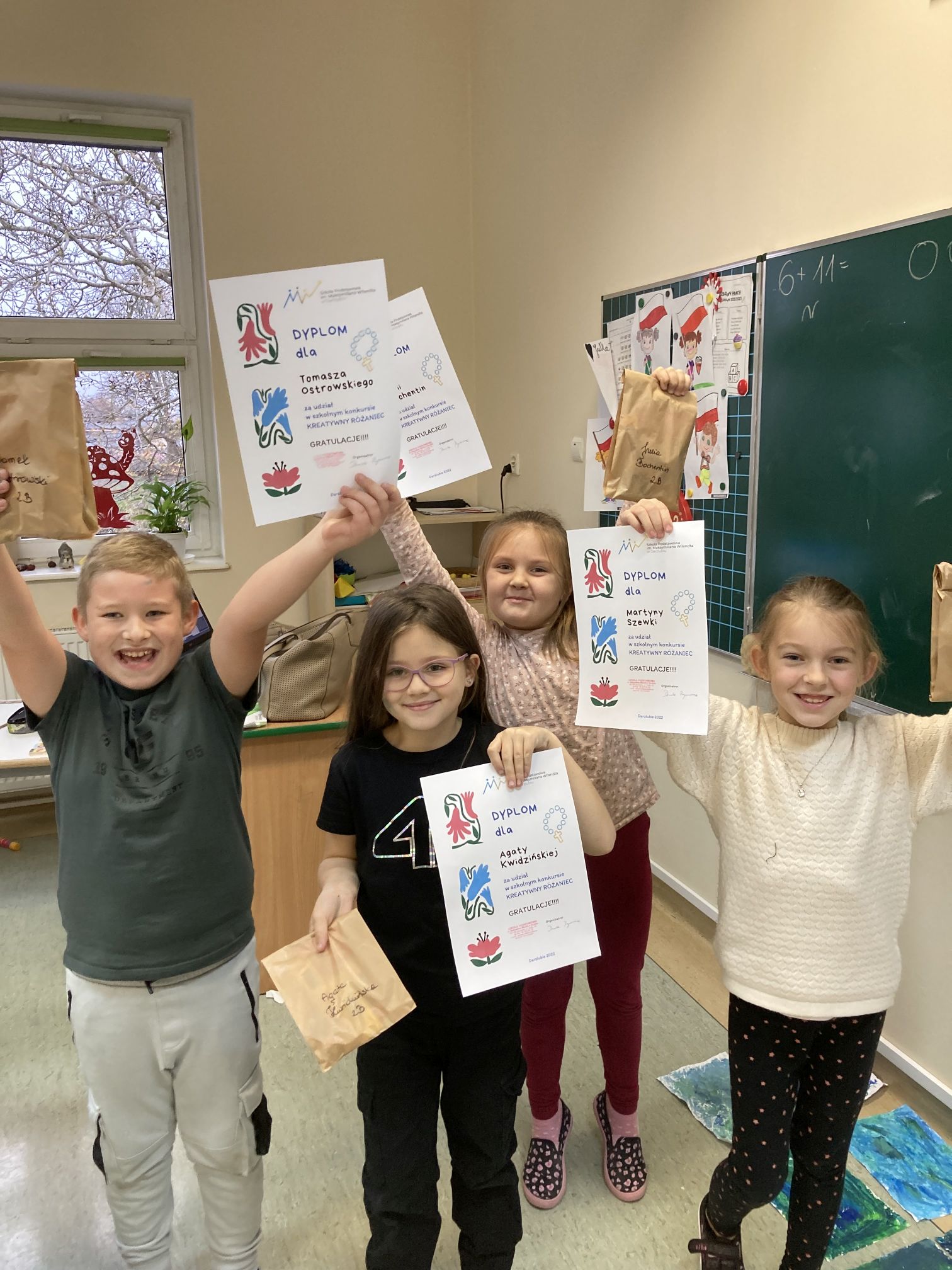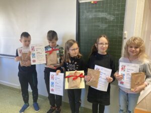Wyżej wymienieni uczniowie otrzymali nagrody niespodzianki książki i słodycze 😉