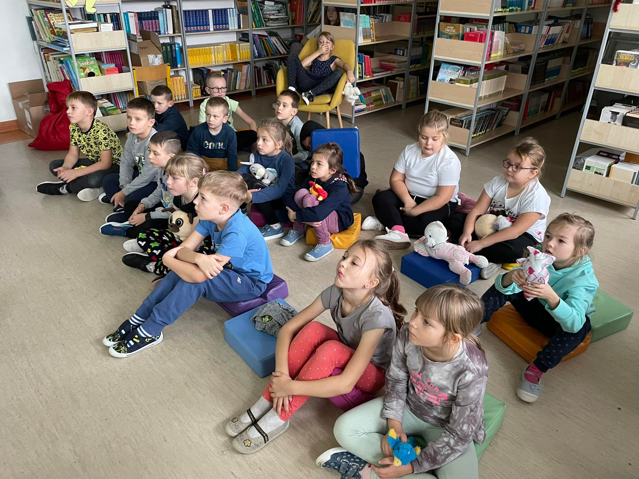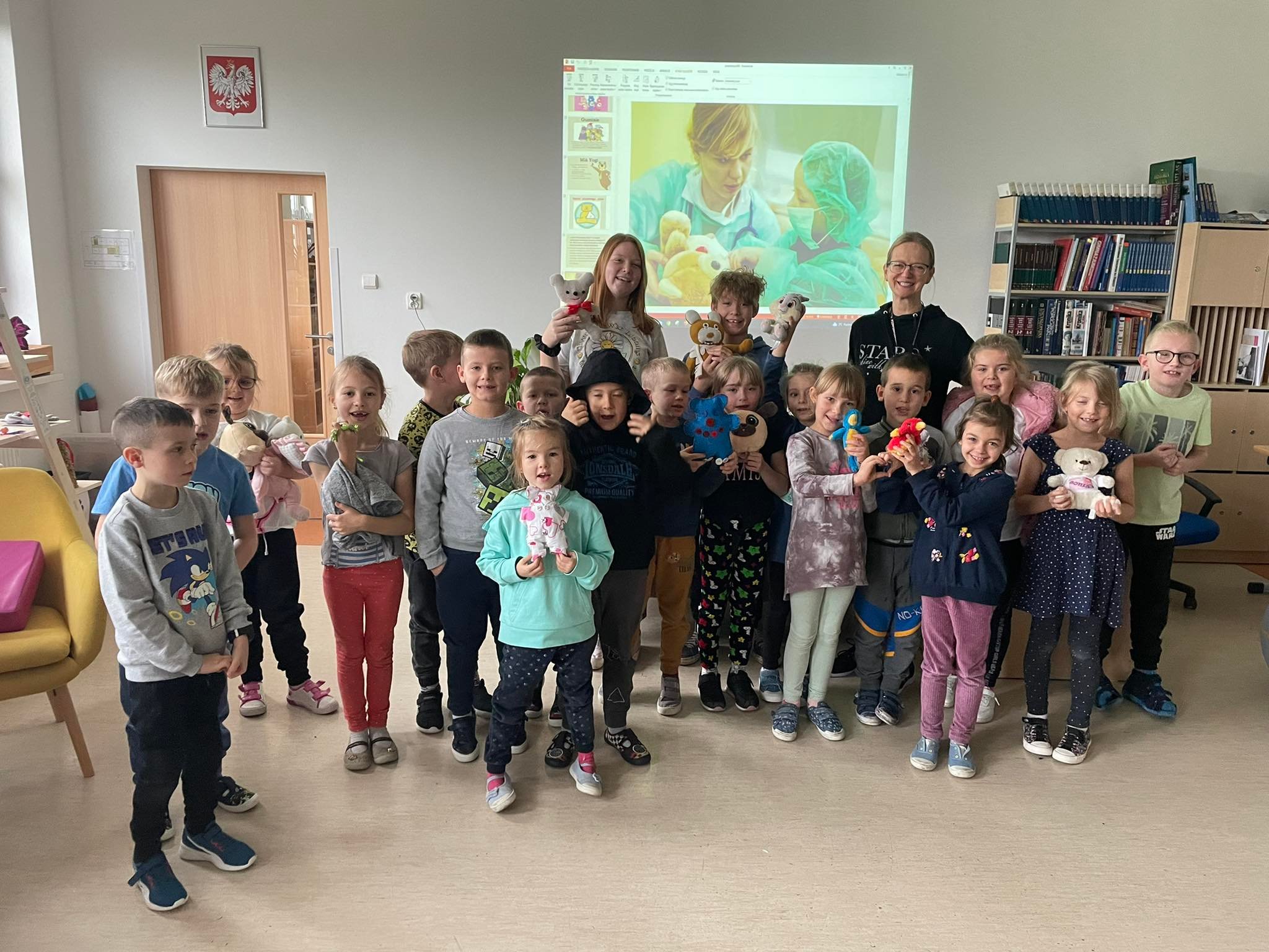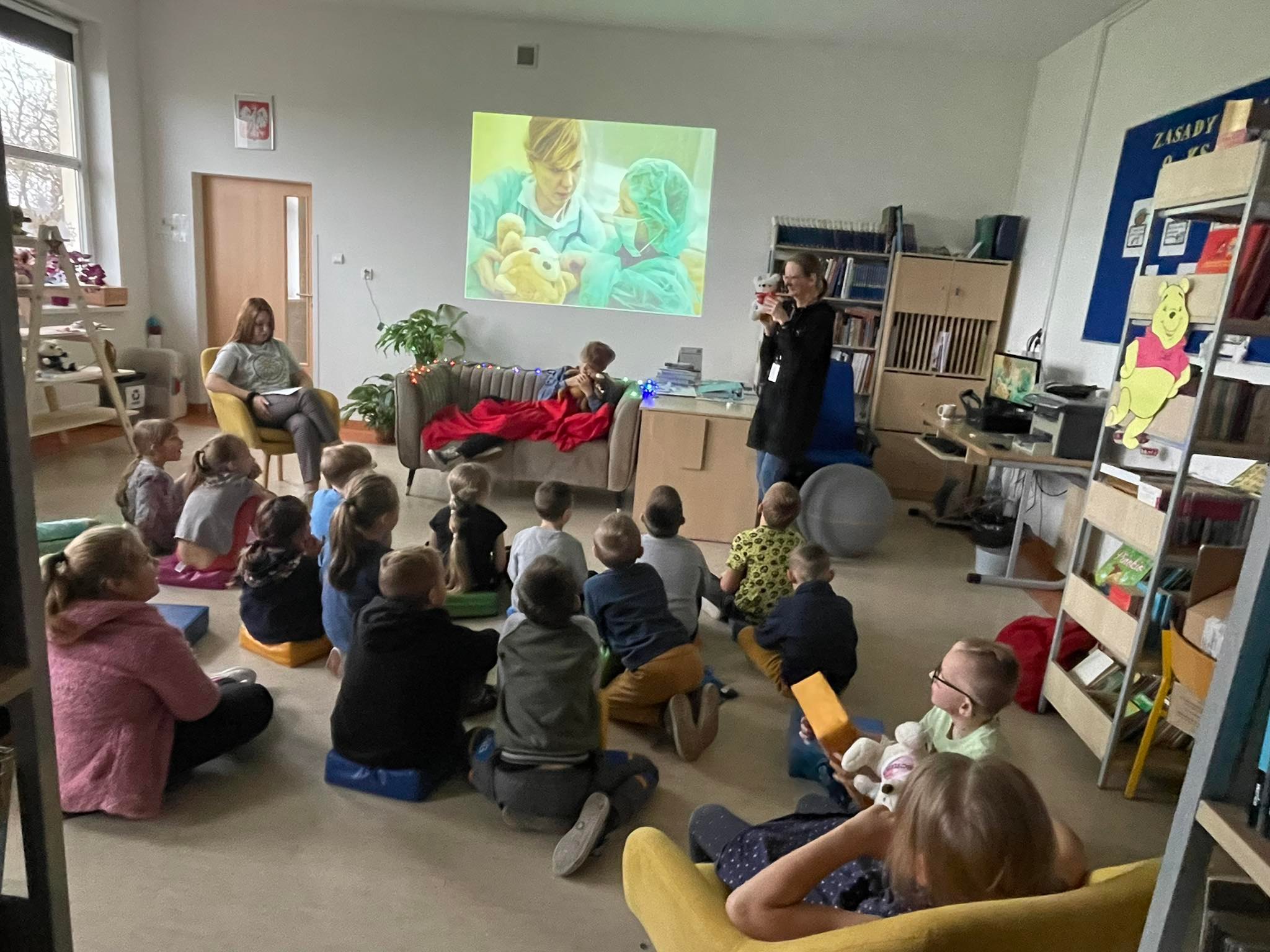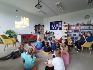 Dzisiaj w szkolnej bibliotece gościliśmy klasę I. Z okazji Dnia Pluszowego Misia klasa poznała historię powstania maskotki, najsławniejsze misie, w szczególności te literackie. Partycja z klasy 7 i Jarek z klasy 6 przygotowali dla pierwszoklasistów małe przedstawienie na postawie opowiadania Marii Kownackiej 'Stary, zielony Miś’. Po zasłużonych owacjach dla aktorów, dzieci obejrzały jeden odcinek z serii 'Miś Uszatek’, klasyki, która dla wielu była nowością