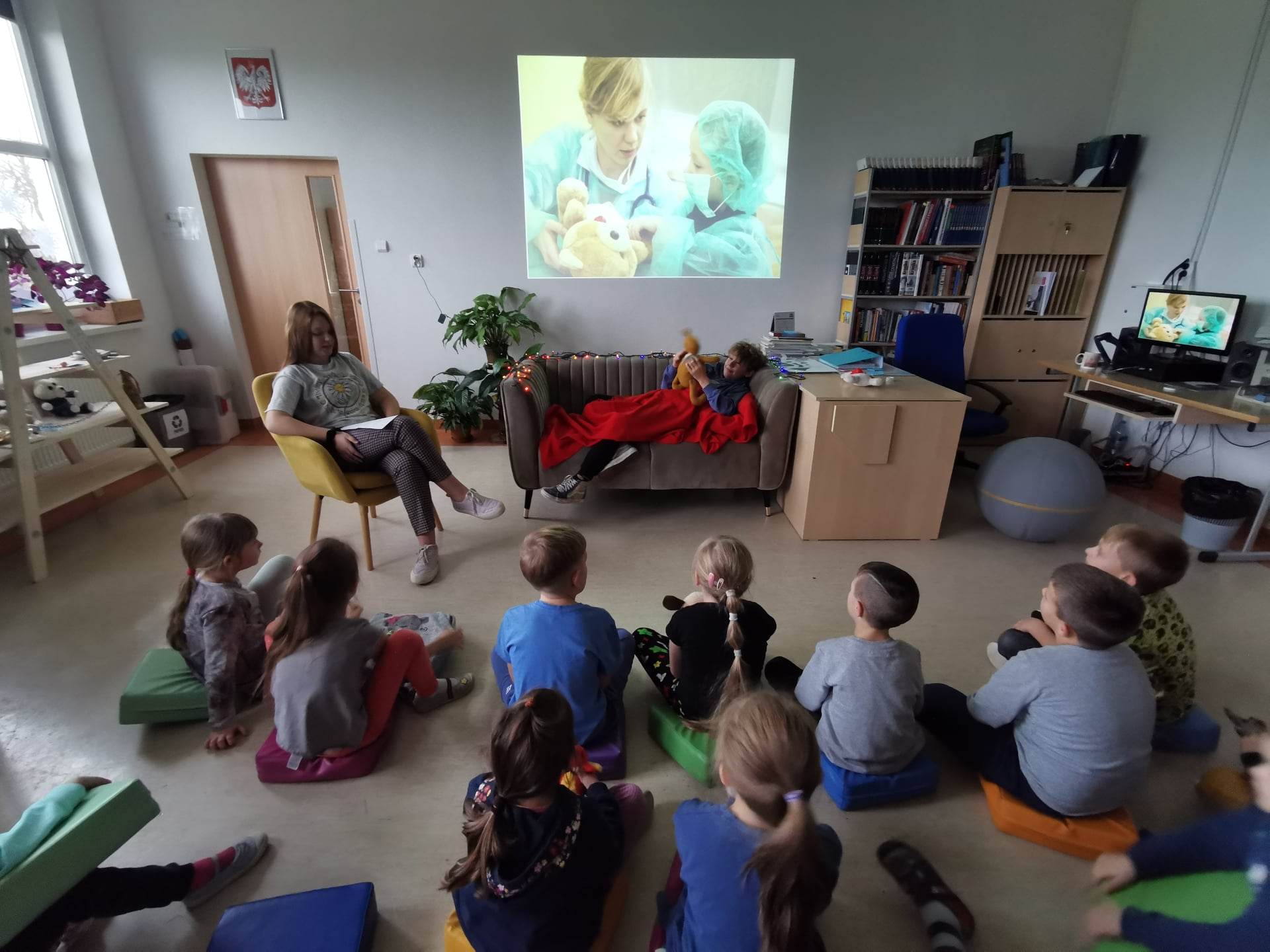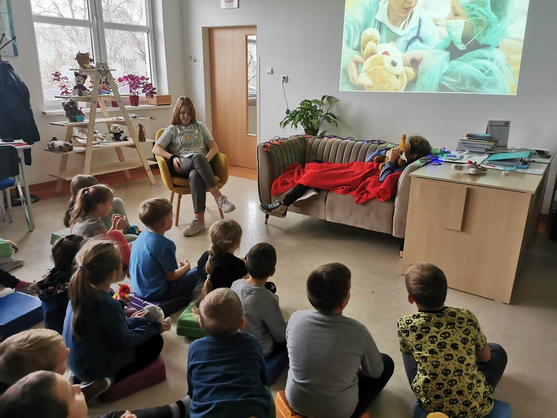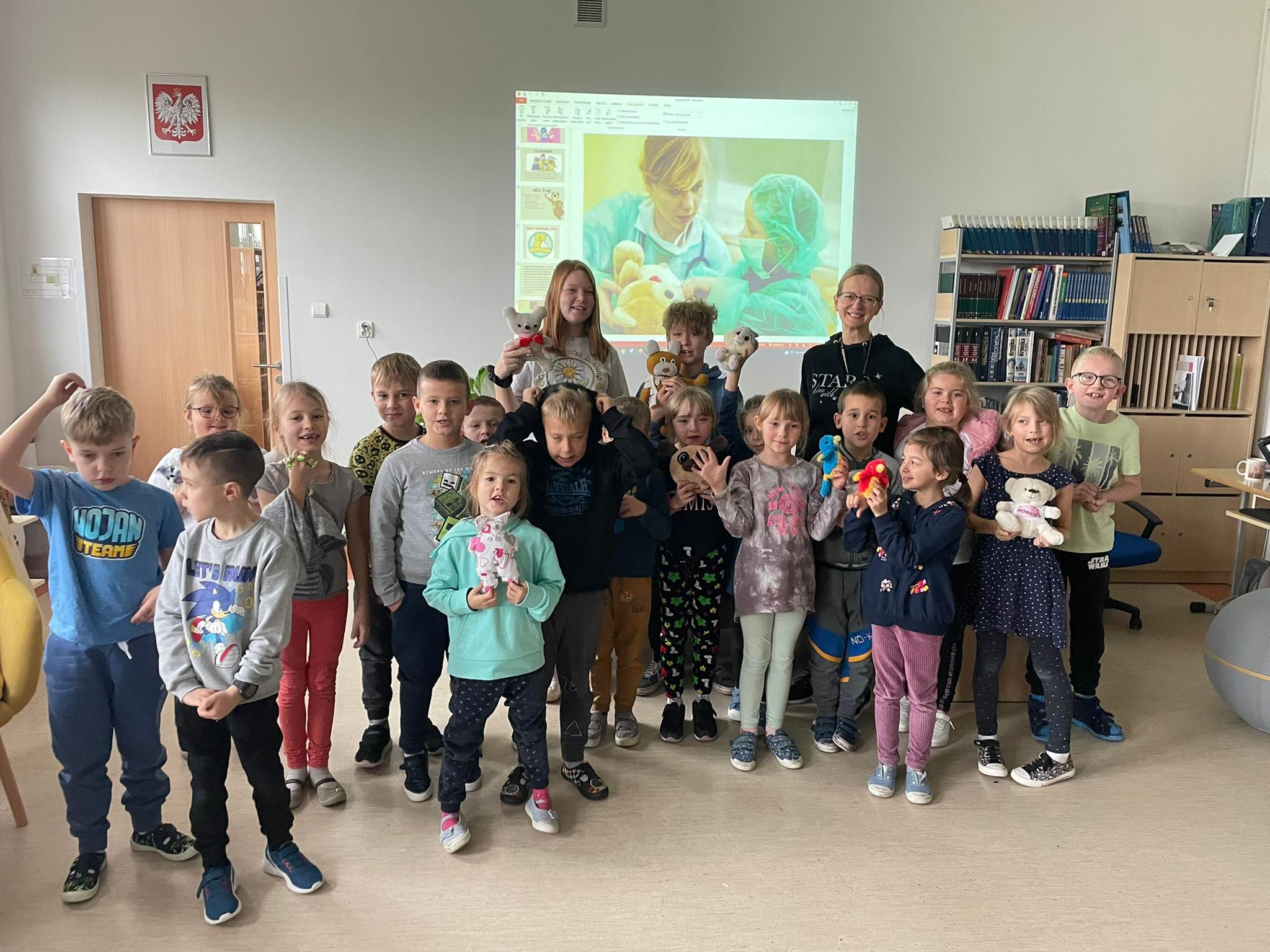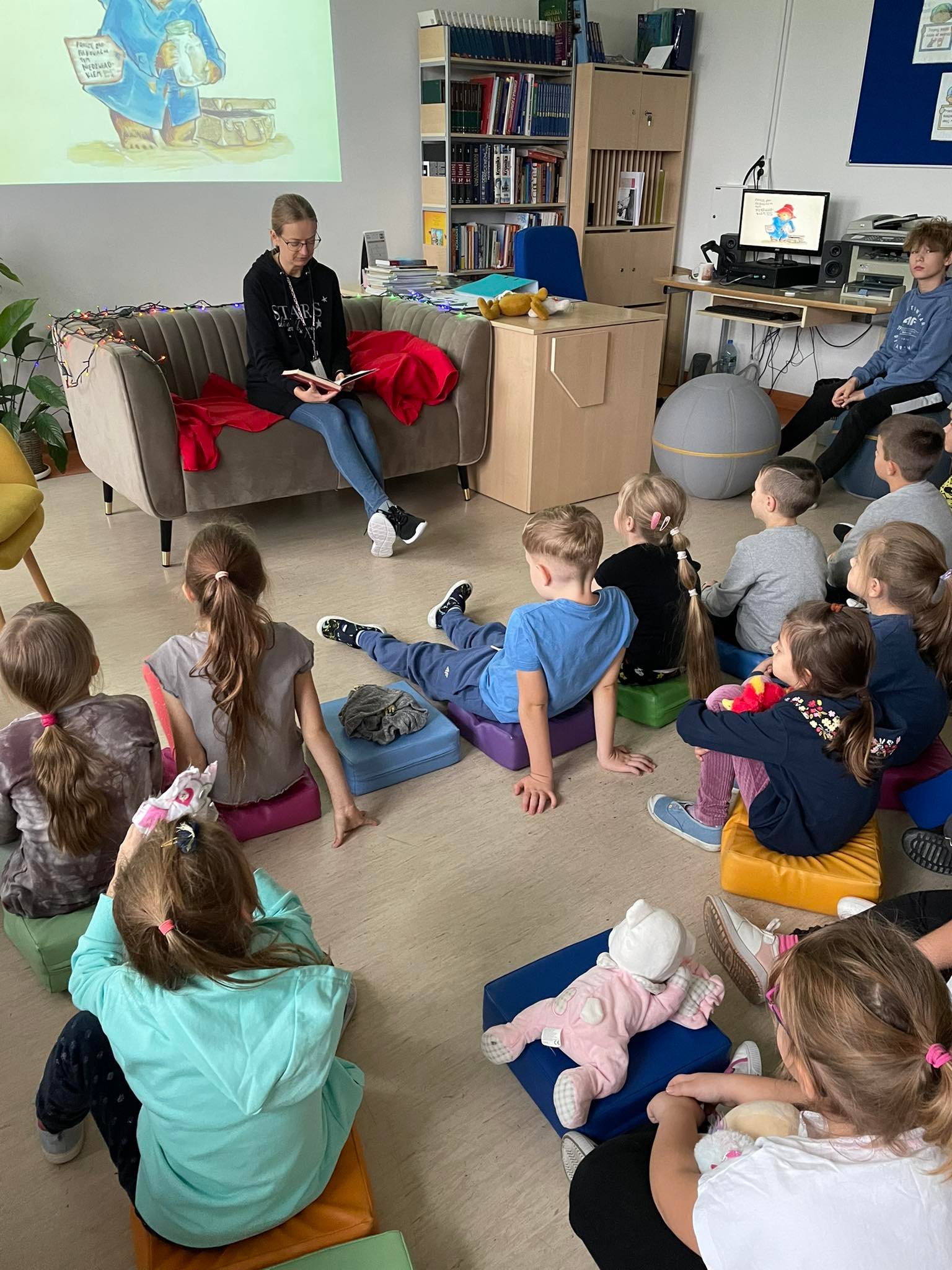 Dzisiaj w szkolnej bibliotece gościliśmy klasę I. Z okazji Dnia Pluszowego Misia klasa poznała historię powstania maskotki, najsławniejsze misie, w szczególności te literackie. Partycja z klasy 7 i Jarek z klasy 6 przygotowali dla pierwszoklasistów małe przedstawienie na postawie opowiadania Marii Kownackiej 'Stary, zielony Miś’. Po zasłużonych owacjach dla aktorów, dzieci obejrzały jeden odcinek z serii 'Miś Uszatek’, klasyki, która dla wielu była nowością