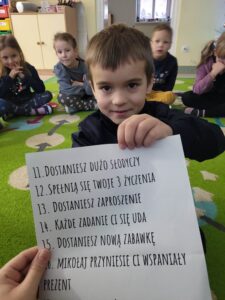 29 listopada przedszkolaki dowiedziały się, na czym polegają Andrzejki. Po zapoznaniu z definicją tego święta, wzięły udział w różnego rodzaju zabawach oraz wróżbach dotyczących ich przyszłości. Świetnie się przy tym bawiąc.