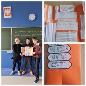 Uczniowie klas 5a oraz 5b wykonali matematyczne lapbooki. Lapbooki to własnoręcznie wykonane „książki” gromadzące informacje na dowolnie wybrany temat. Lapbook to znakomita powtórka wiadomości, która w tym przypadku była jednocześnie sprawdzianem z działu „Figury na płaszczyźnie”. Kształt, forma, technika wykonania zależą od pomysłowości wykonujących. Zaletą wykonania lapbooka jest logiczne myślenie, koncentracja, organizacja pracy, cierpliwość, praca w grupie, kreatywność oraz porządkowanie i pogłębianie wiedzy.