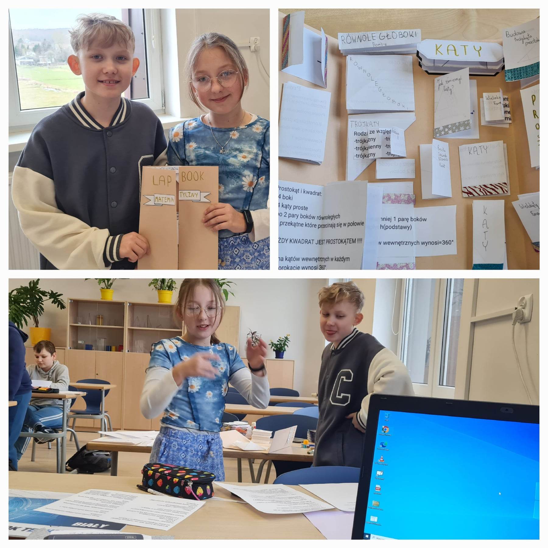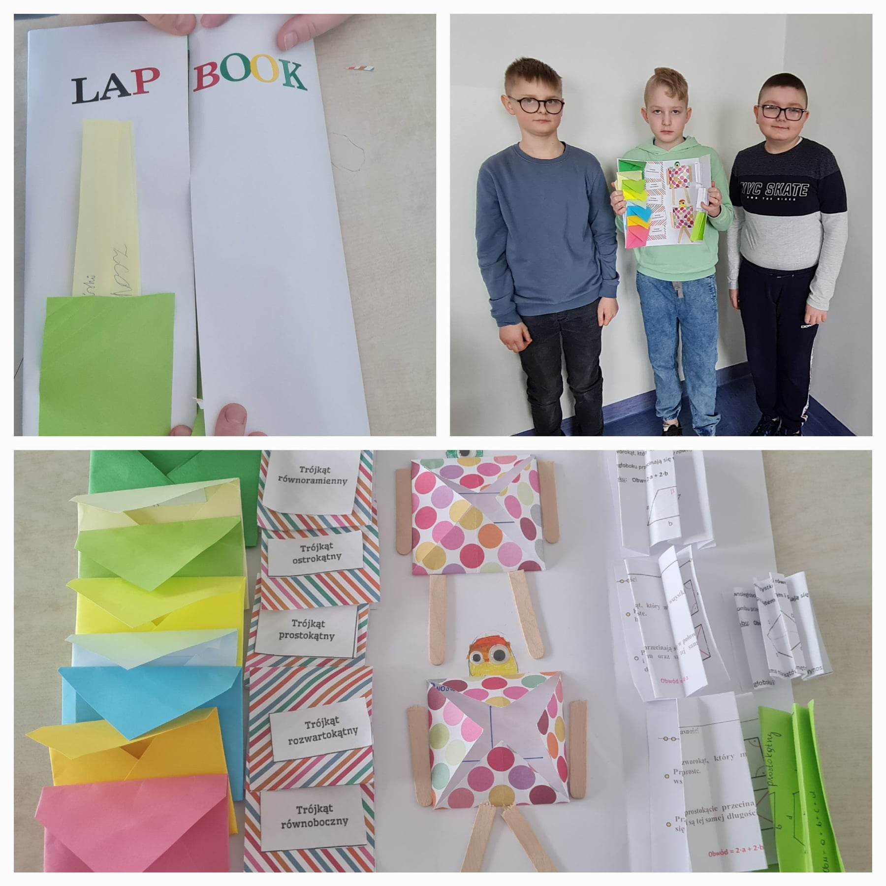 Uczniowie klas 5a oraz 5b wykonali matematyczne lapbooki. Lapbooki to własnoręcznie wykonane „książki” gromadzące informacje na dowolnie wybrany temat. Lapbook to znakomita powtórka wiadomości, która w tym przypadku była jednocześnie sprawdzianem z działu „Figury na płaszczyźnie”. Kształt, forma, technika wykonania zależą od pomysłowości wykonujących. Zaletą wykonania lapbooka jest logiczne myślenie, koncentracja, organizacja pracy, cierpliwość, praca w grupie, kreatywność oraz porządkowanie i pogłębianie wiedzy.