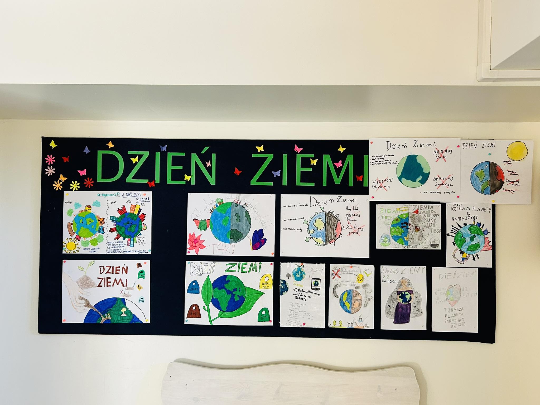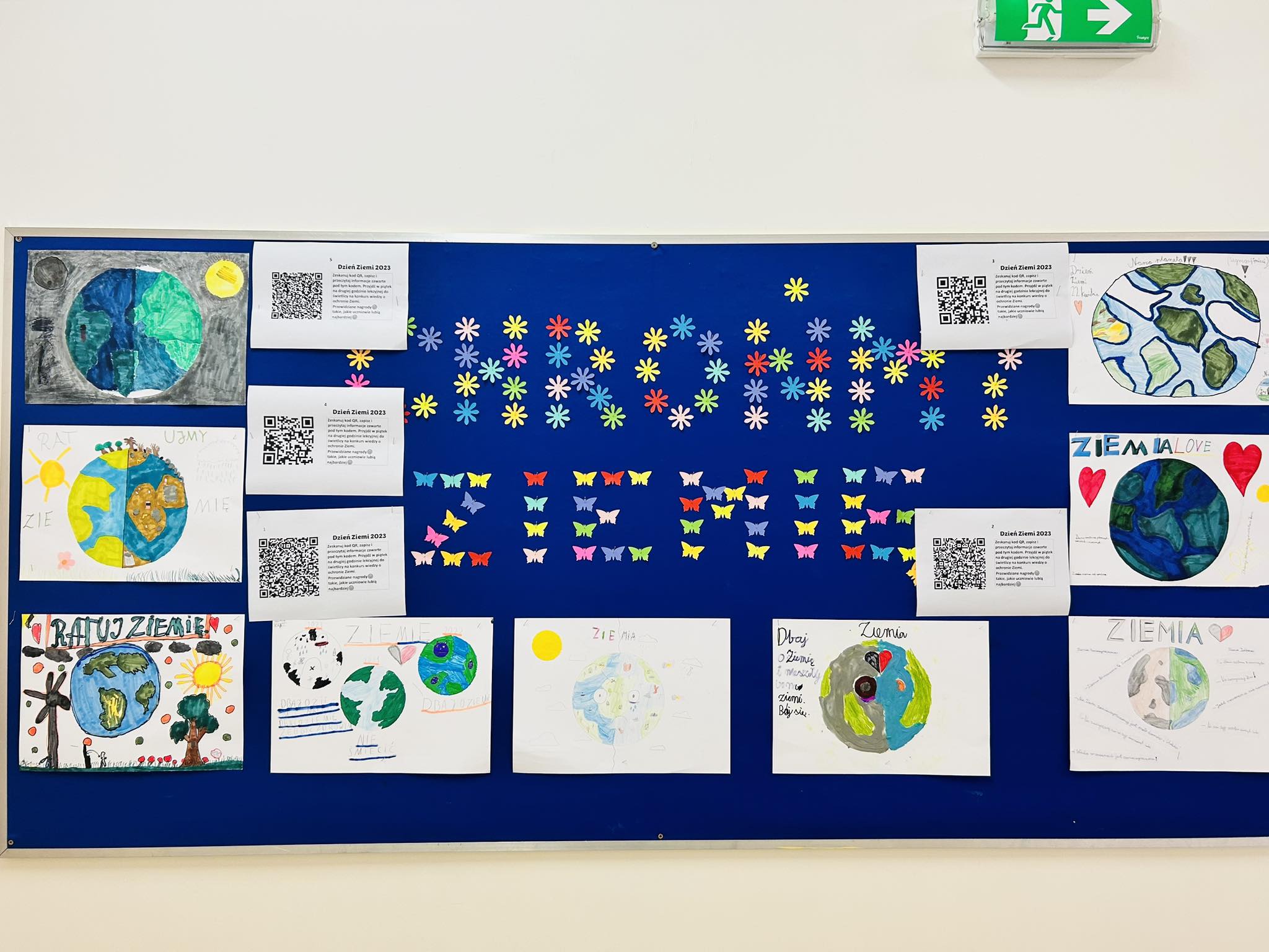 Od czwartku na gazetkach szkolnych w kilku miejscach w szkole, rozwieszone były kody QR. Skanując kod, można było przenieść się do źródła informacji o naszej planecie. Z tych wiadomości uczniowie pisali w piątek test wiedzy o ochronie Ziemi.