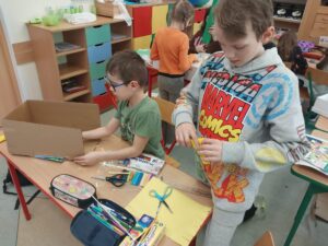 Uczniowie klasy IIIa zainspirowani książką ,,Czarna owieczka” J. Grabowskiego wykonali kompozycje przestrzenne. Poniżej można zobaczyć efekty ich pracy.