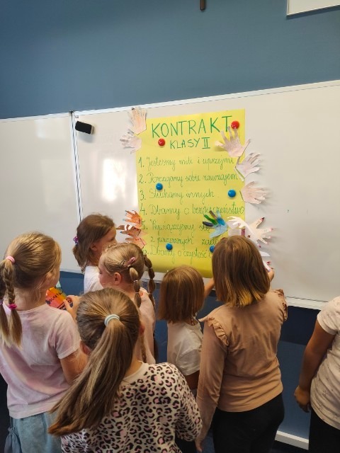 Uczniowie klasy drugiej wspólnie tworzyli zbiór zasad, które będą pomagać w budowaniu dobrych relacji i współpracy w grupie.