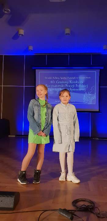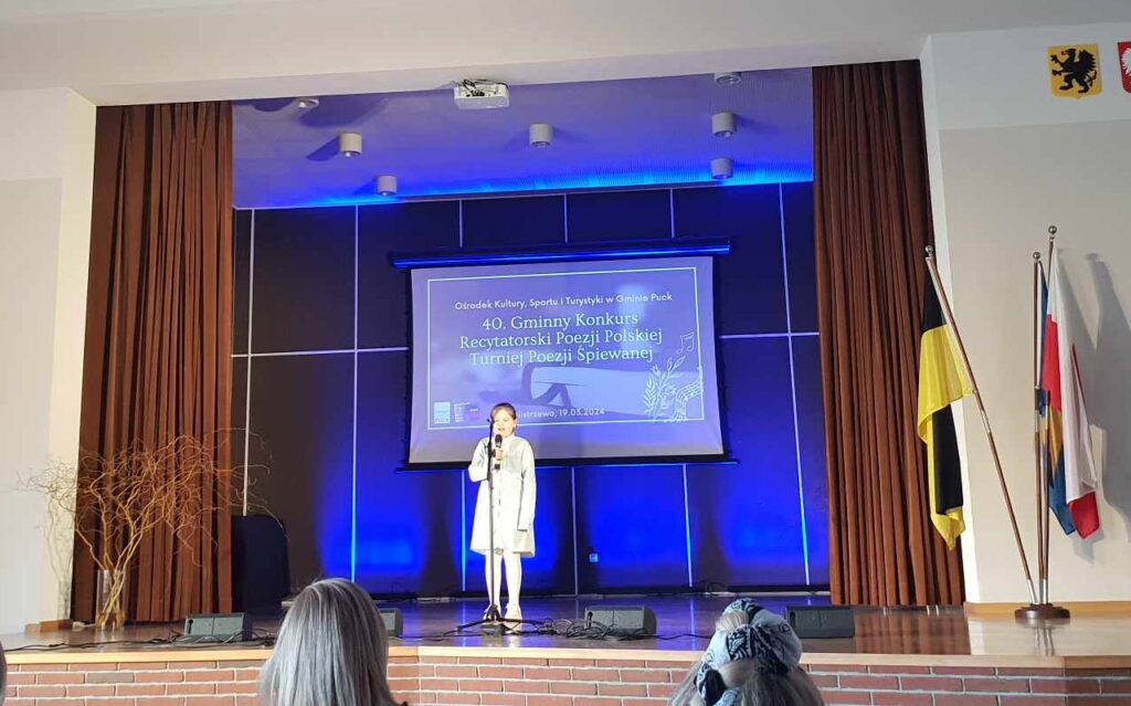 W dniu 19 marca 2024 r, w Wiejskim Domu Kultury w Żelistrzewie odbył się 40 Gminny Konkurs Recytatorski Poezji Polskiej. Naszą szkołę reprezentowały uczennice klas trzecich: Aleksandra Wołoszyk oraz Julia Bochentin. Udział w Gminnym Konkursie Recytatorskim był dla nich dużym sukcesem. Uczennice zaprezentowały wysoki poziom umiejętności recytatorskich i zaangażowanie w interpretację tekstów. Konkurs był również okazją do integracji środowiska miłośników poezji i prozy z terenu gminy.