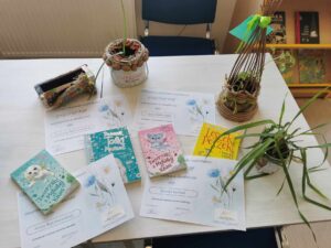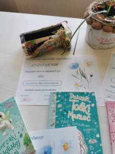 W odpowiedzi na zaproszenie do udziału w zabawie do biblioteki zgłoszono cztery piękne prace. Wasza kreatywność i tym razem nie zawiodła. Pomysły na to, co może wyrosnąć z nasionek były następujące: Filip Hollender – „Cukierkowe drzewko”, Zuzia Byczkowska- „Wiedza”, Ania Byczkowska – „Fantazja”, Blanka Konkel – „Zdrowie”. Wszystkie prace zasłużyły na zwycięstwo. Uczestnicy otrzymali dyplomy oraz nagrody książkowe. Samodzielnie wykonane ekologiczne doniczki zdobią biblioteczny parapet. Dziękuję za Wasze pomysły i zaangażowanie!