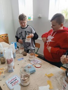 W tym roku uczniowie mieli okazję wykonać samodzielnie niezwykle prosty, sensoryczny prezent dla każdej mamy 🙂 Zaletą tego upominku jest radość tworzenia, które jest bardzo przyjemne i pobudzające zmysły 🤲👅👂👁👃 „Ciastka w słoiku” zawojowały uczniów klasy 1b, 2a, 3b i 6b 🙂