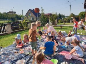 Warsztaty dostarczyły przedszkolakom świetnej zabawy, jak również stymulacji wszystkich zmysłów (węchu, smaku, dotyku). Każde dziecko stworzyło swoją masę plastyczną, a następnie wszystkie razem utworzyły dywan sensoryczny, co stało się pretekstem do jeszcze lepszej zabawy 🙂 Przedszkolakom zajęcia bardzo się podobały i z niecierpliwością czekają na kolejne.