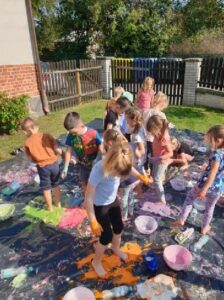 14 września w oddziale przedszkolnym odbyły się po raz pierwszy zajęcia Sensoplastyka®. Celem tych zajęć jest wspieranie rozwoju umiejętności radzenia sobie z własnymi emocjami oraz zdolności do współpracy, porozumiewania się z innymi i działania w grupie.