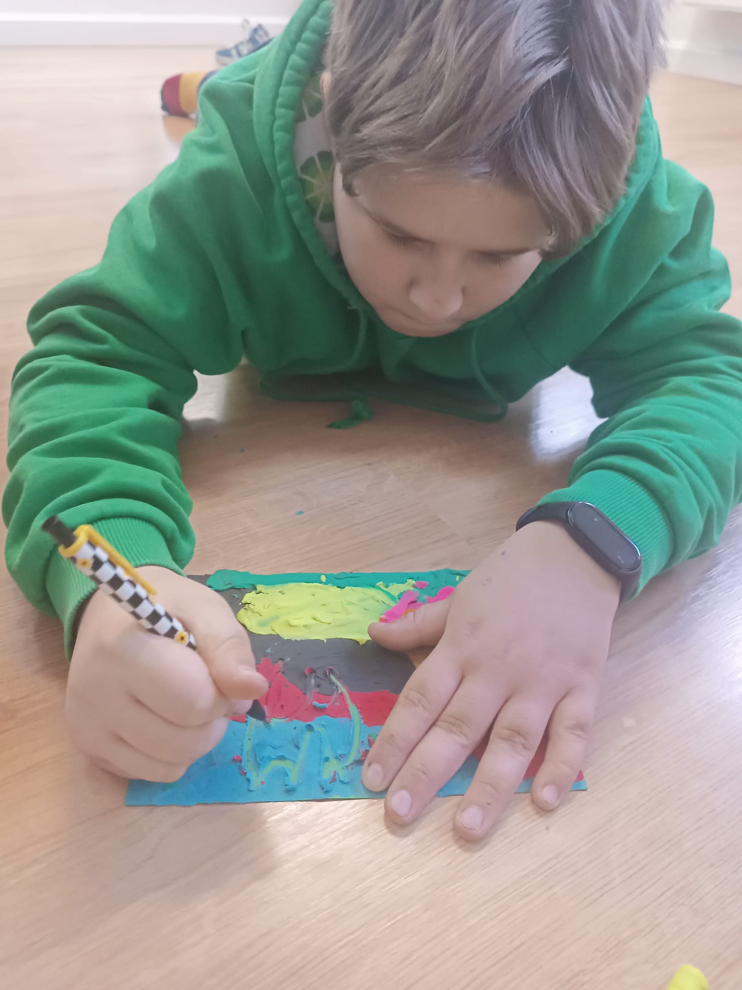 I my dziś właśnie tak spędziliśmy czas na naszych zajęciach: ugniatając paluszkami, rozcierając dłońmi przeróżne kolory stworzyliśmy kolejne małe dzieła sztuki 😍😍😍 przy okazji takich bliskich spotkań z Panią Plasteliną dzieci ćwiczą nie tylko kreatywność i wyobraźnię przestrzenną, ale także motorykę ruchową rączek, a nawet zdolności językowe 🙂