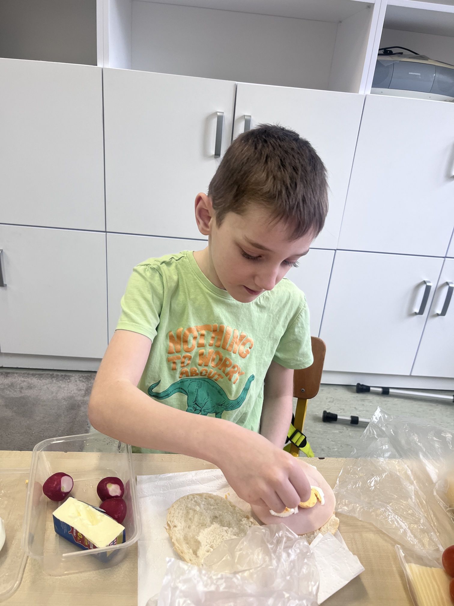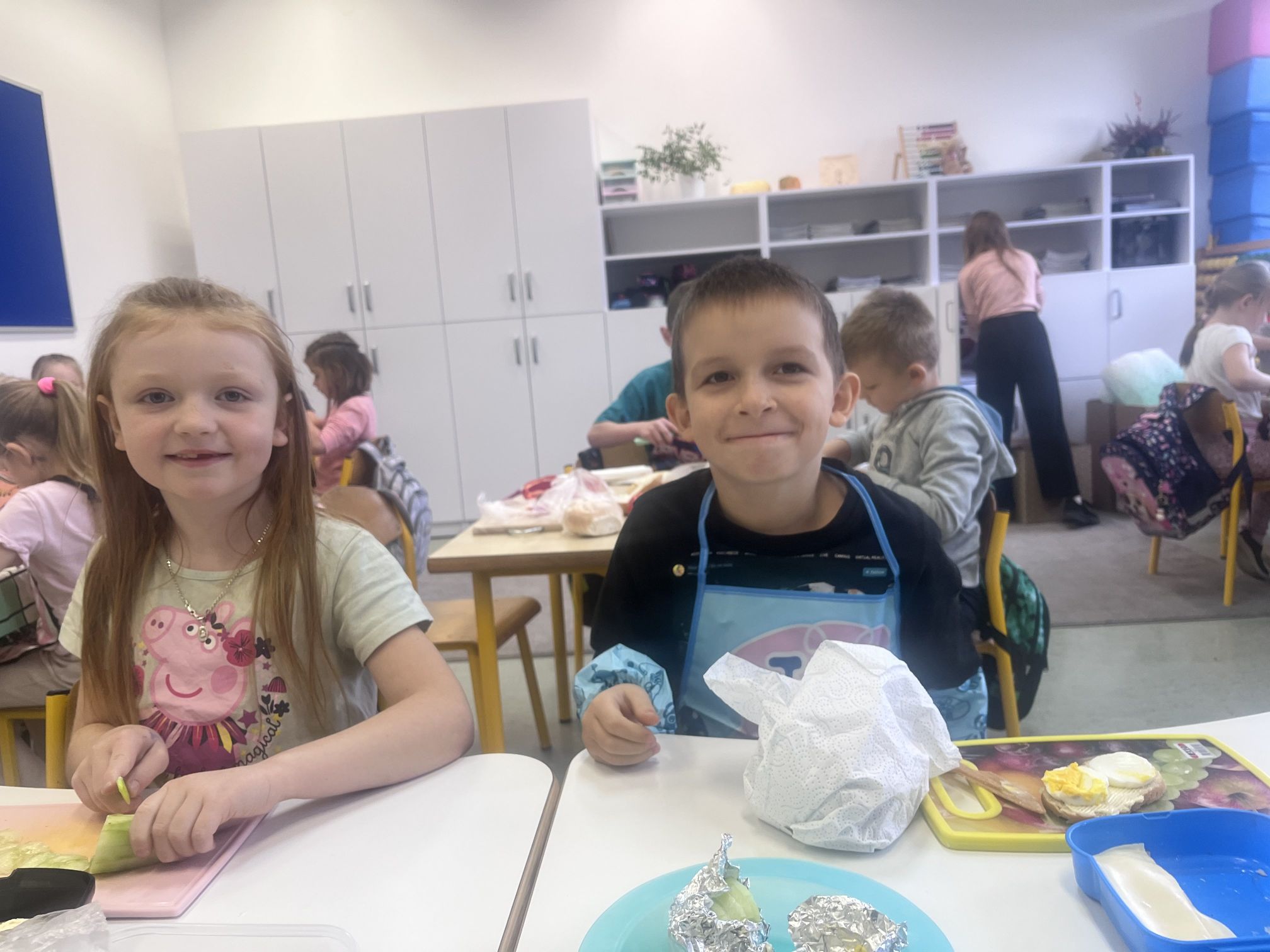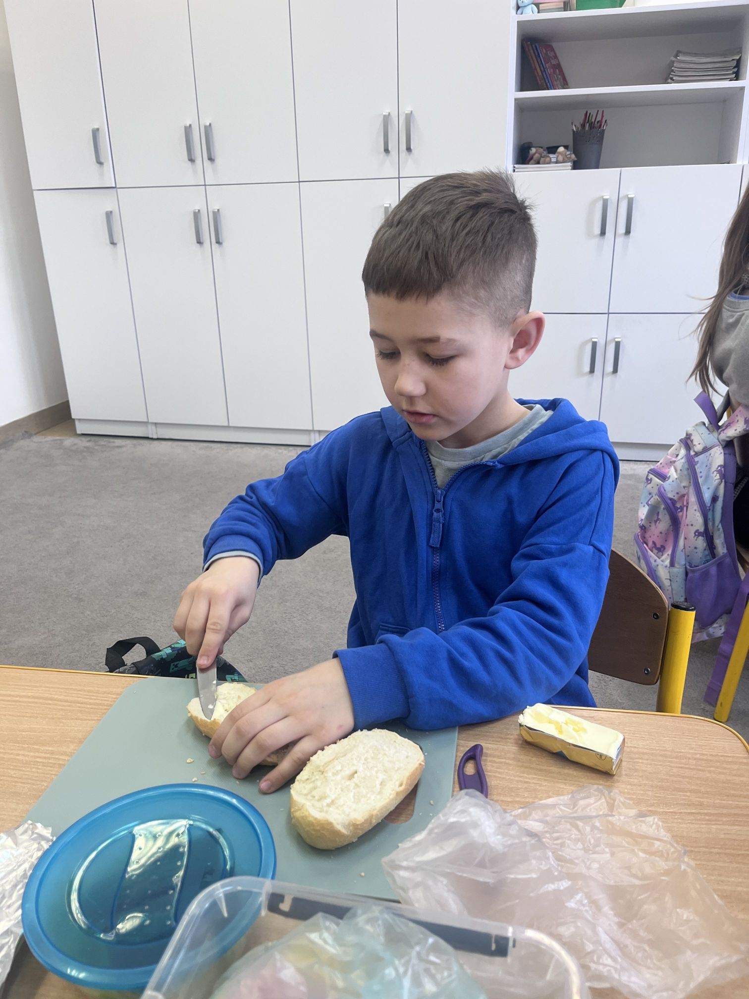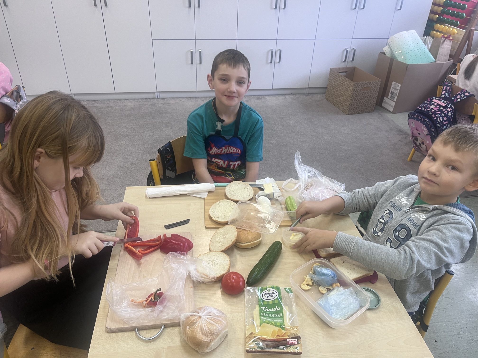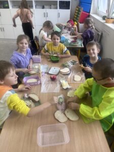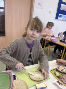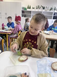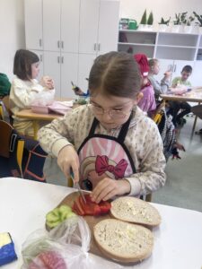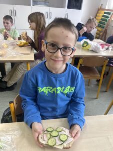 Uczniowie z klasy Ia raz w miesiącu samodzielnie przygotowują śniadanie. Jest to doskonała okazja, aby nauczyć się samodzielności oraz pamiętać, jak ważne jest zdrowe odżywianie. Podczas wykonywania śniadania dzieciom towarzyszy zadowolenie z samych siebie oraz satysfakcja z jedzenia własnoręcznie wykonanych zdrowych kanapek.
