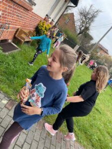 Tuż przed świętami Wielkanocnymi na uczniów klasy 3 czekała wyjątkowa niespodzianka – w szkolnym ogródku zostały ukryte drobne upominki przygotowane przez rodziców. Dzieci z ogromnym entuzjazmem odkrywały kolorowe paczuszki, a radości i śmiechu było co niemiara!