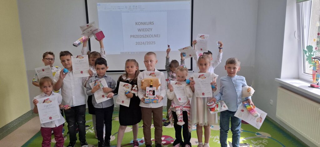 2 czerwca w oddziale przedszkolnym odbył się konkurs wiedzy przedszkolnej. Celem wydarzenia było wyłonienie przedszkolaka z największą wiedzą ogólną z zakresu treści omawianych przez cały rok w oddziale przedszkolnym. Konkurs miał formę znanego teleturnieju „Jeden z dziesięciu” — z tą Czytaj więcej