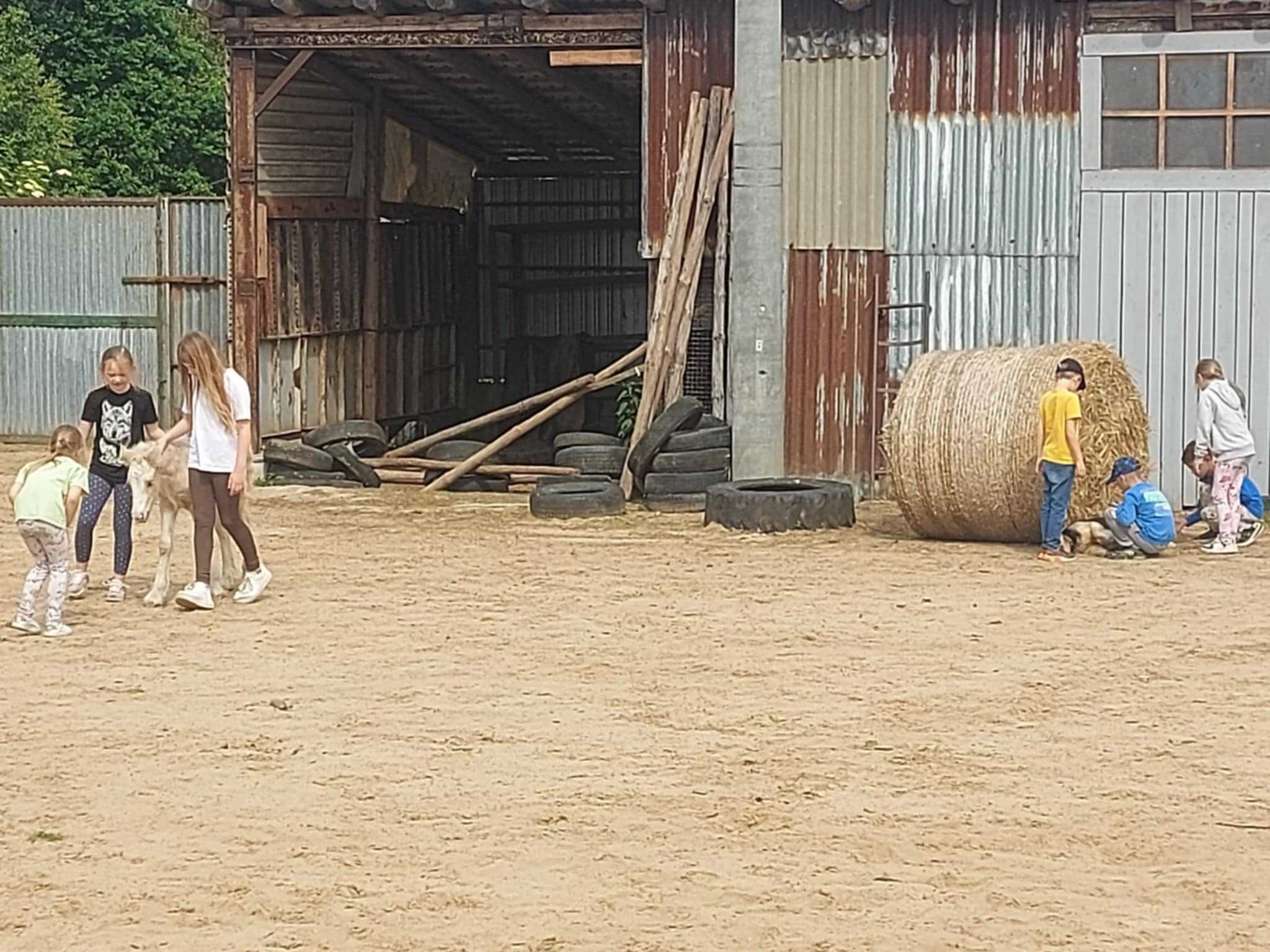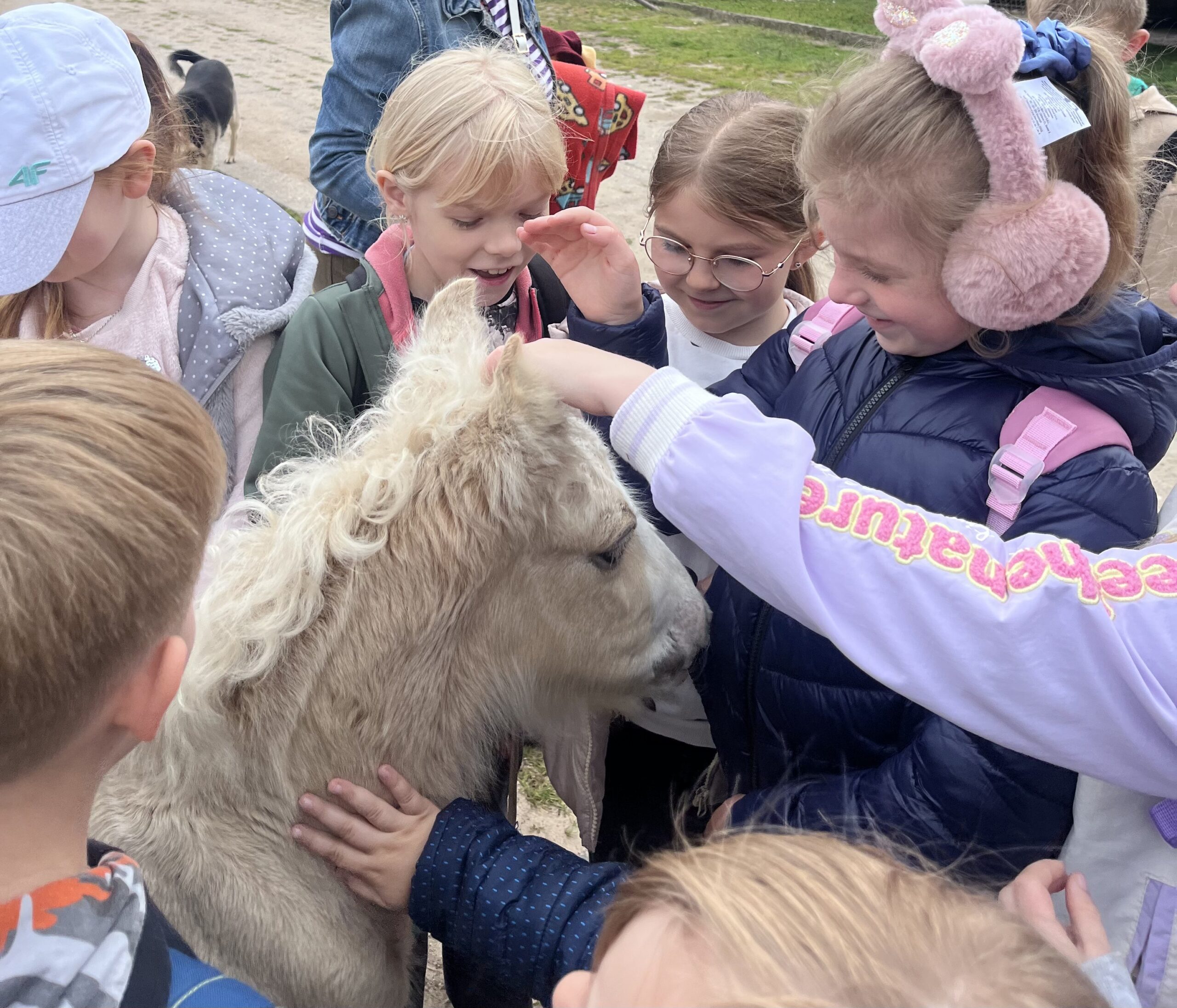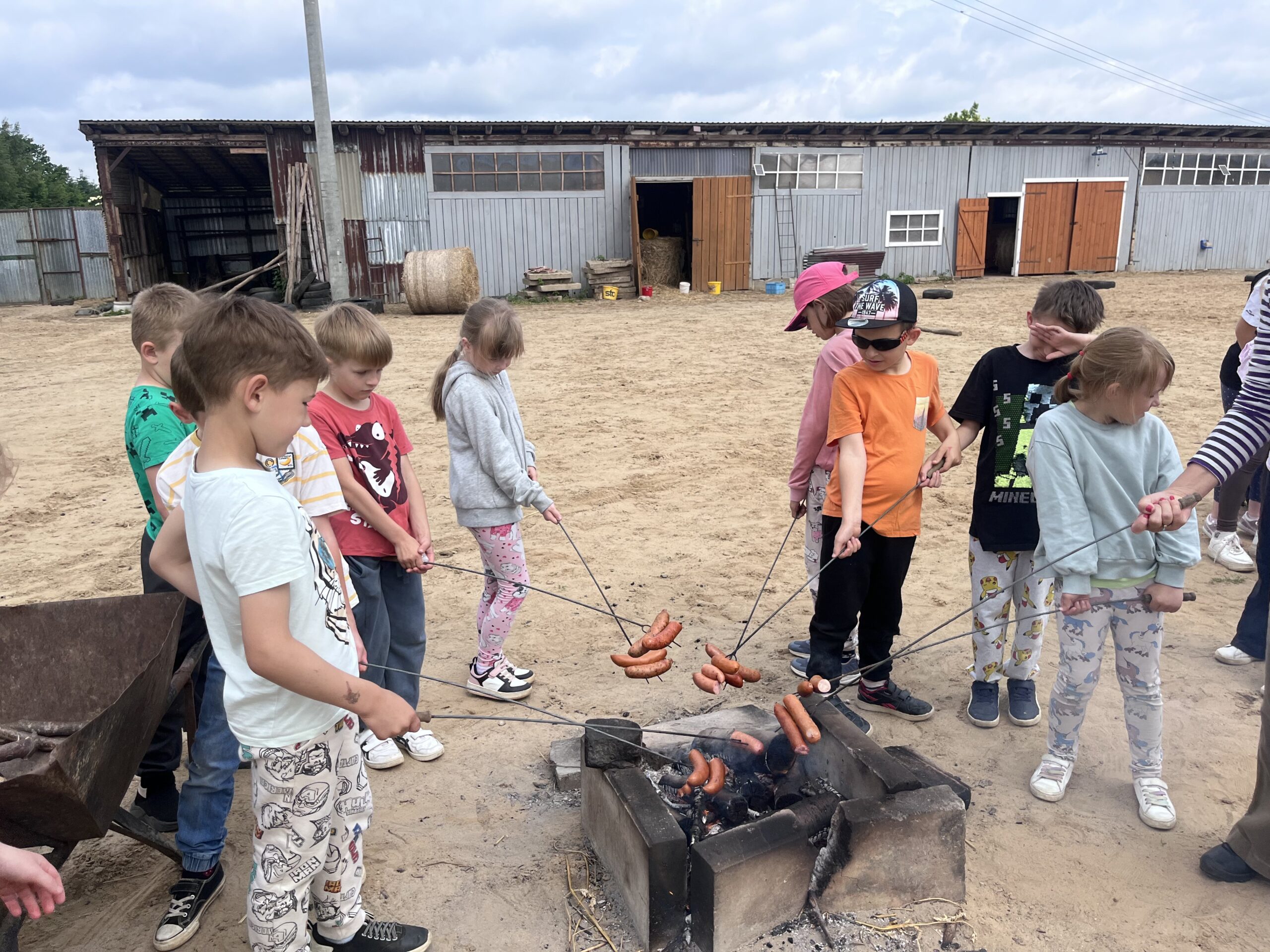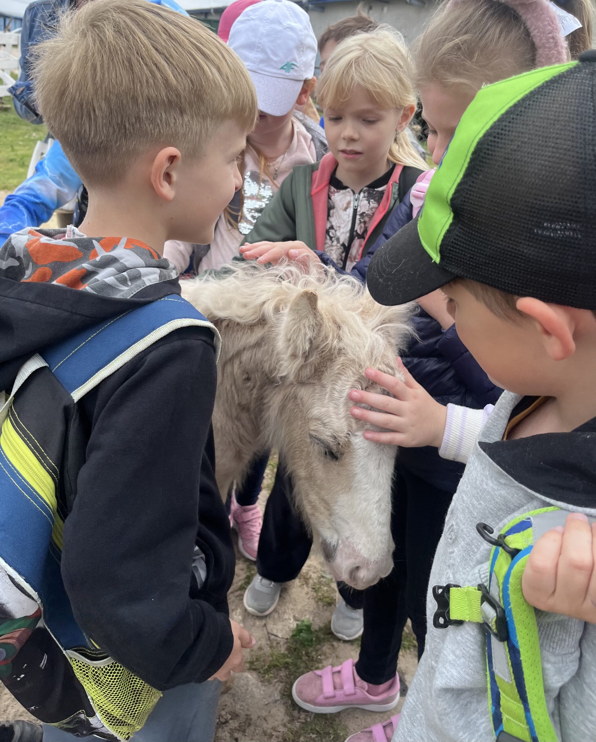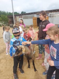 W piękny, słoneczny dzień klasa pierwsza wybrała się na niezwykłą wycieczkę do „Stajni pod Gwiazdami”. Już od pierwszych chwil na miejscu dzieci były oczarowane – mogły z bliska zobaczyć kozy, owce, konie, kury, koguty oraz kaczki oraz skosztować koziego mleka. Ogromną radość sprawiło wszystkim spotkanie z wyjątkowym kucykiem o imieniu Wiłka, który towarzyszył nam przez całą wizytę. Nie zabrakło również beztroskiej zabawy – dzieci spontanicznie wymyśliły skakanie przez opony, co przyniosło im mnóstwo śmiechu i radości. Zwieńczeniem wycieczki było wspólne ognisko, podczas którego wszyscy mogli odpocząć i upiec kiełbaski.