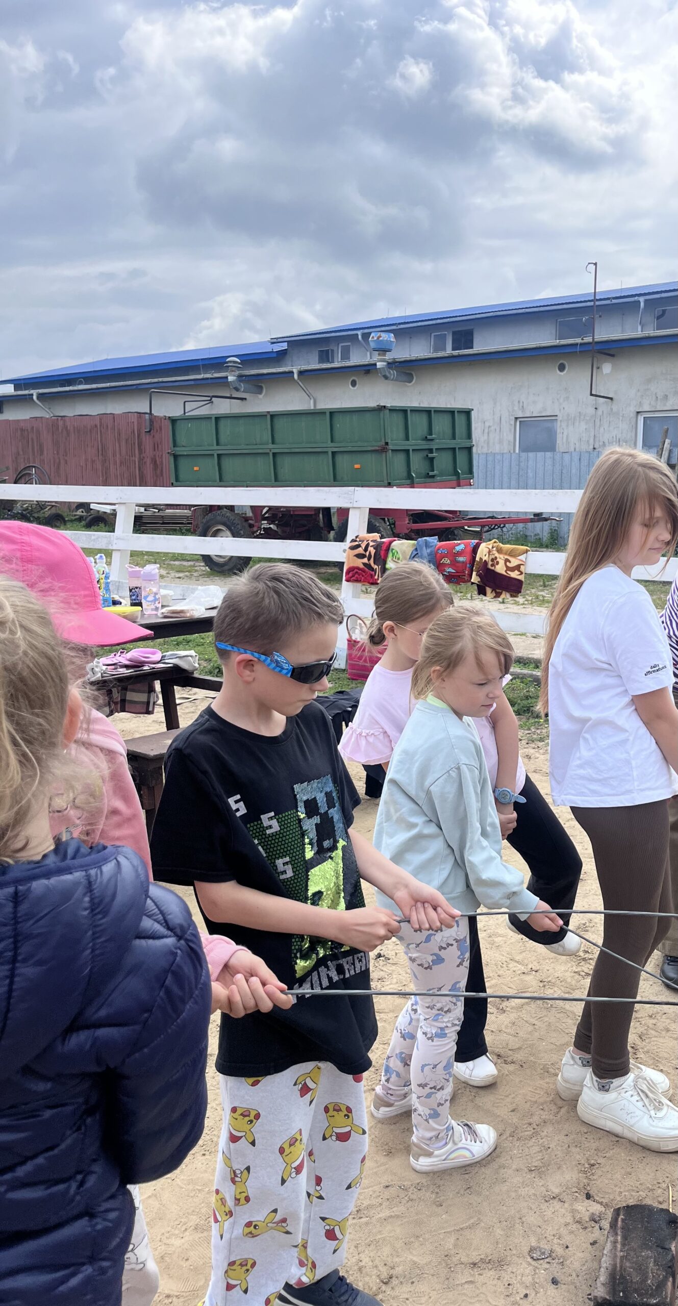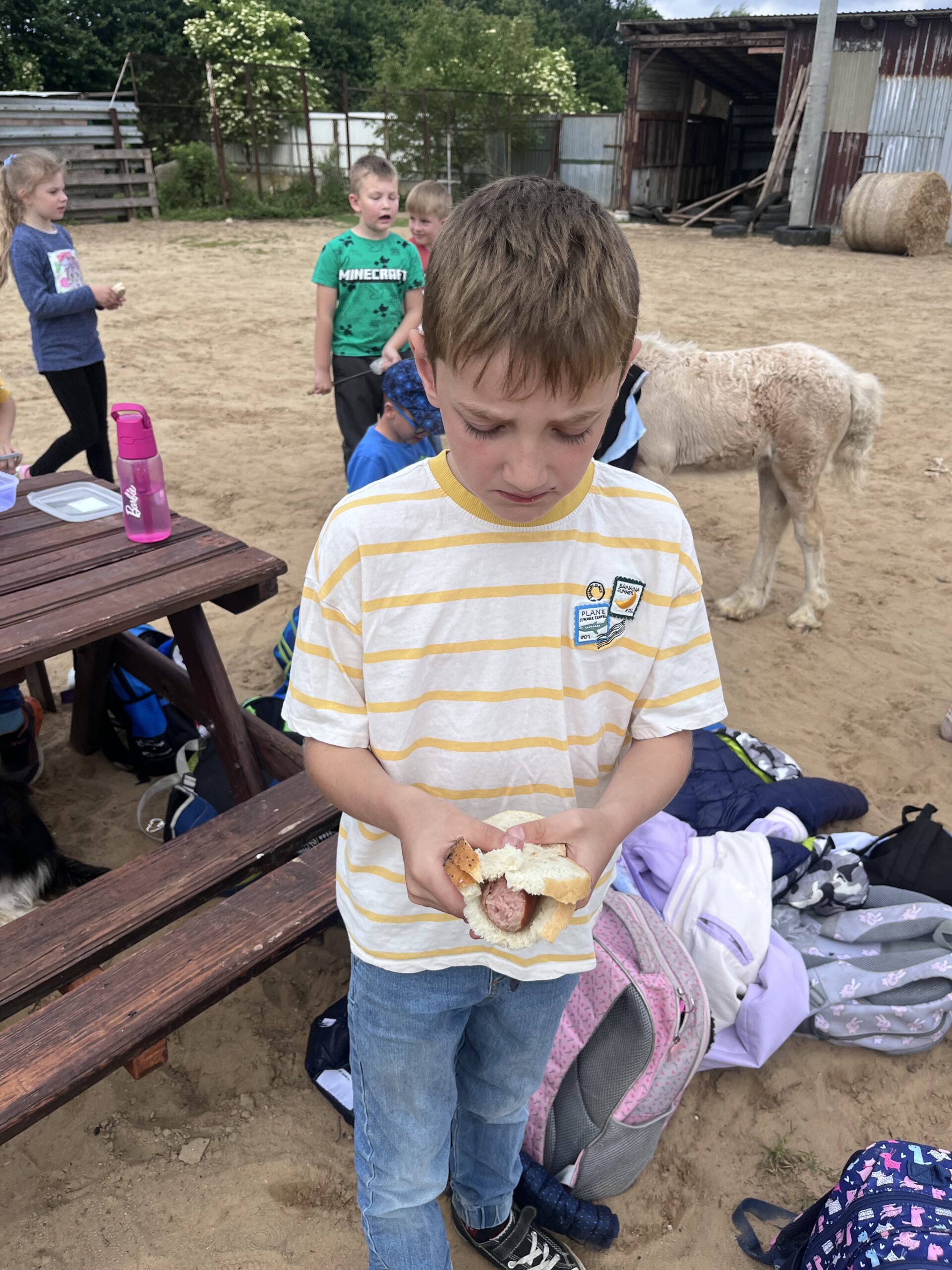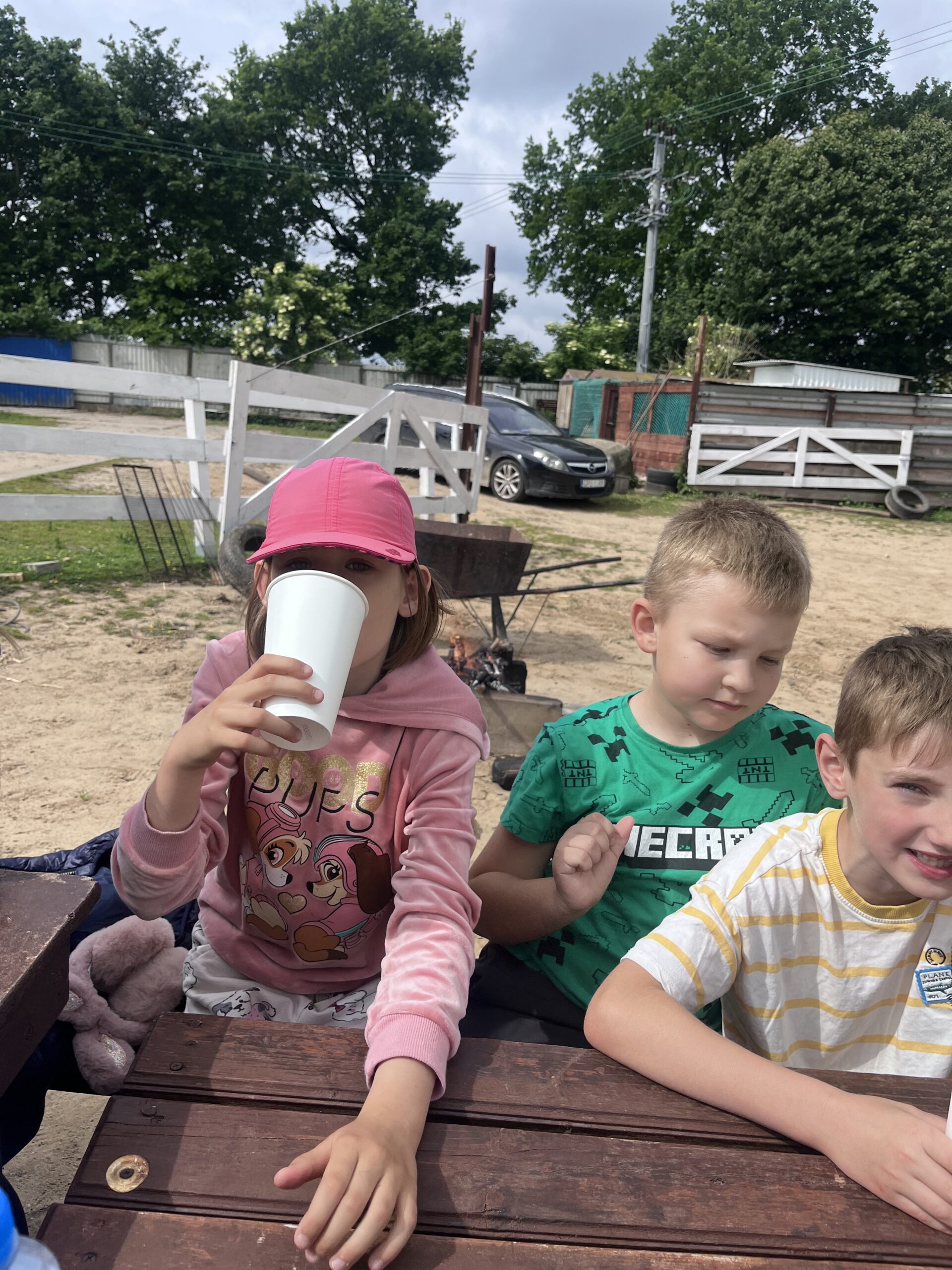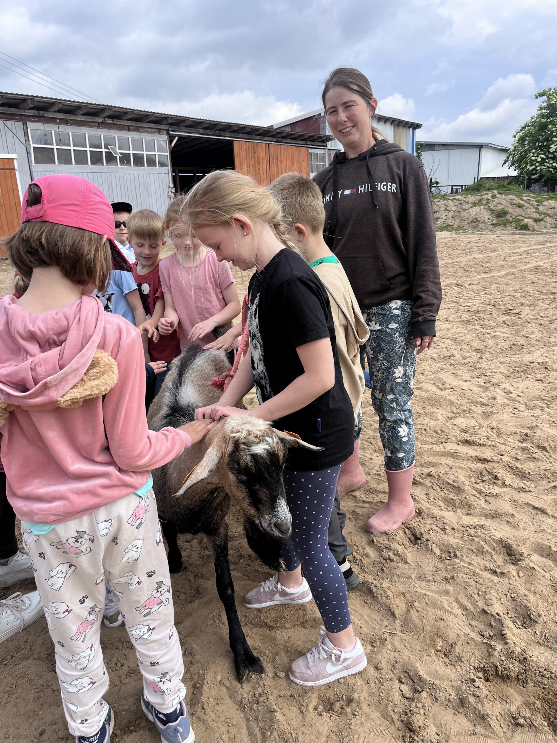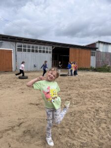 W piękny, słoneczny dzień klasa pierwsza wybrała się na niezwykłą wycieczkę do „Stajni pod Gwiazdami”. Już od pierwszych chwil na miejscu dzieci były oczarowane – mogły z bliska zobaczyć kozy, owce, konie, kury, koguty oraz kaczki oraz skosztować koziego mleka. Ogromną radość sprawiło wszystkim spotkanie z wyjątkowym kucykiem o imieniu Wiłka, który towarzyszył nam przez całą wizytę. Nie zabrakło również beztroskiej zabawy – dzieci spontanicznie wymyśliły skakanie przez opony, co przyniosło im mnóstwo śmiechu i radości. Zwieńczeniem wycieczki było wspólne ognisko, podczas którego wszyscy mogli odpocząć i upiec kiełbaski.
