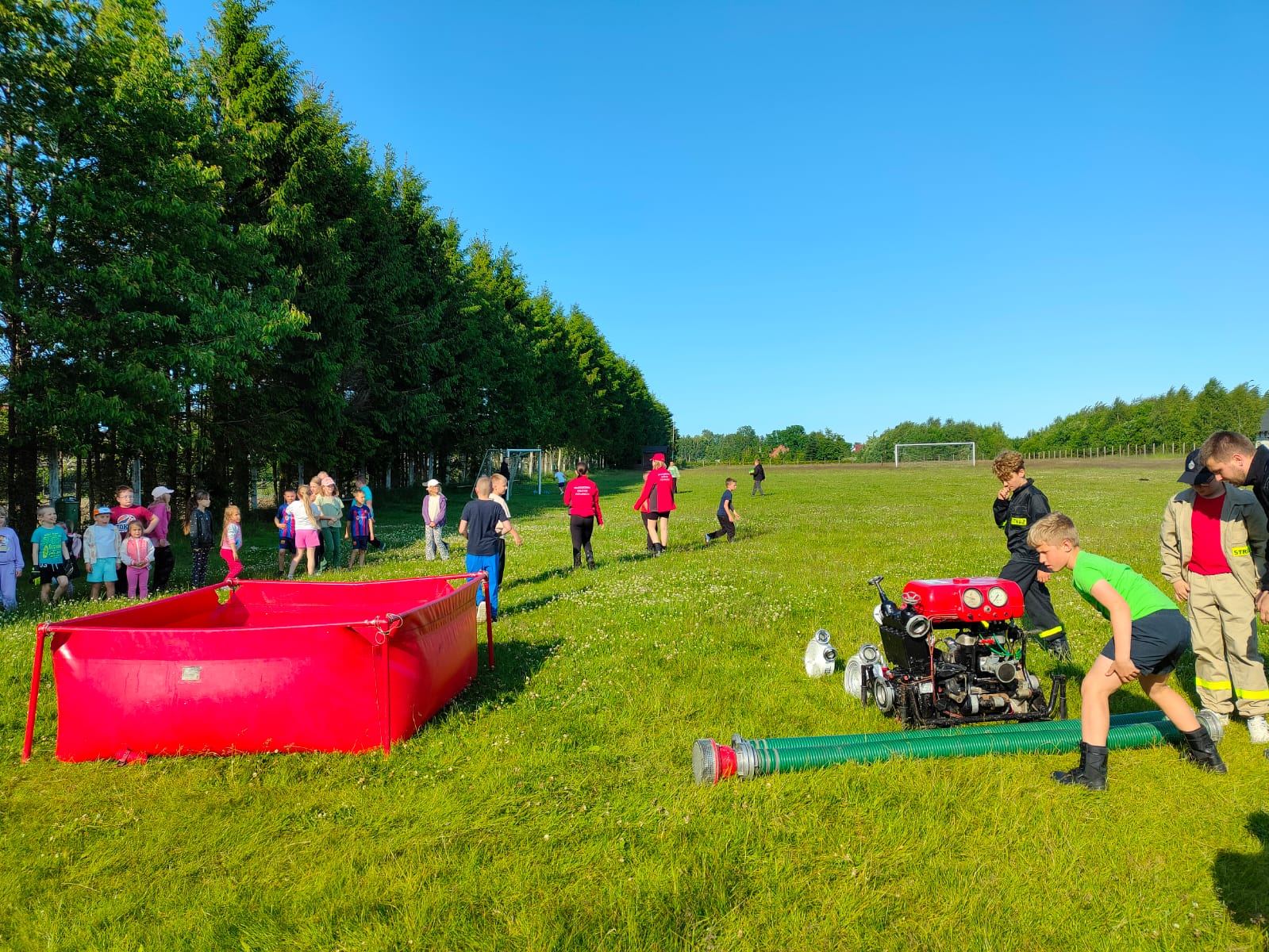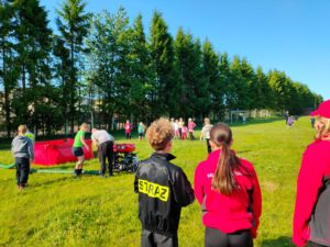 Jednym punktów programu był pokaz młodych strażaków z miejscowej jednostki OSP. Uczestnicy mogli z bliska obejrzeć sprzęt ratowniczy oraz pokaz działań gaśniczych.