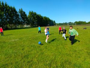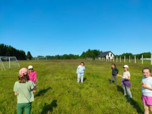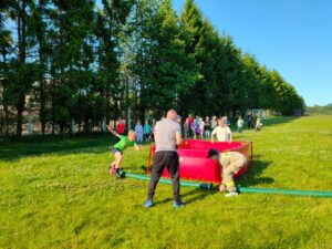 Dzieci mogły uczestniczyć w różnego rodzaju grach i zabawach na świeżym powietrzu. Radości i śmiechu było co niemiara, a wspólna zabawa sprzyjała integracji całej klasy i ich rodzin.