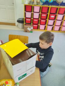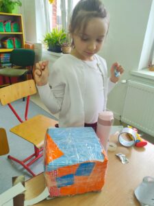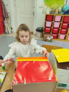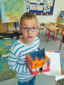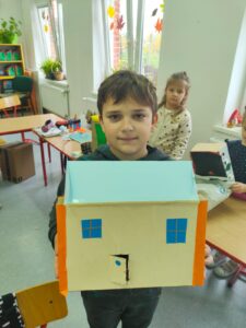 Dzieci opowiadały o tym, czym jest dla nich dom, co sprawia, że czujemy się w nim bezpiecznie i szczęśliwie, a następnie przystąpiły do pracy plastyczno-technicznej. Z tektury, papieru i kolorowych materiałów powstały pomysłowe budowle: przytulne chatki, małe domki, futurystyczne wieżowce, a nawet bajkowe zamki.