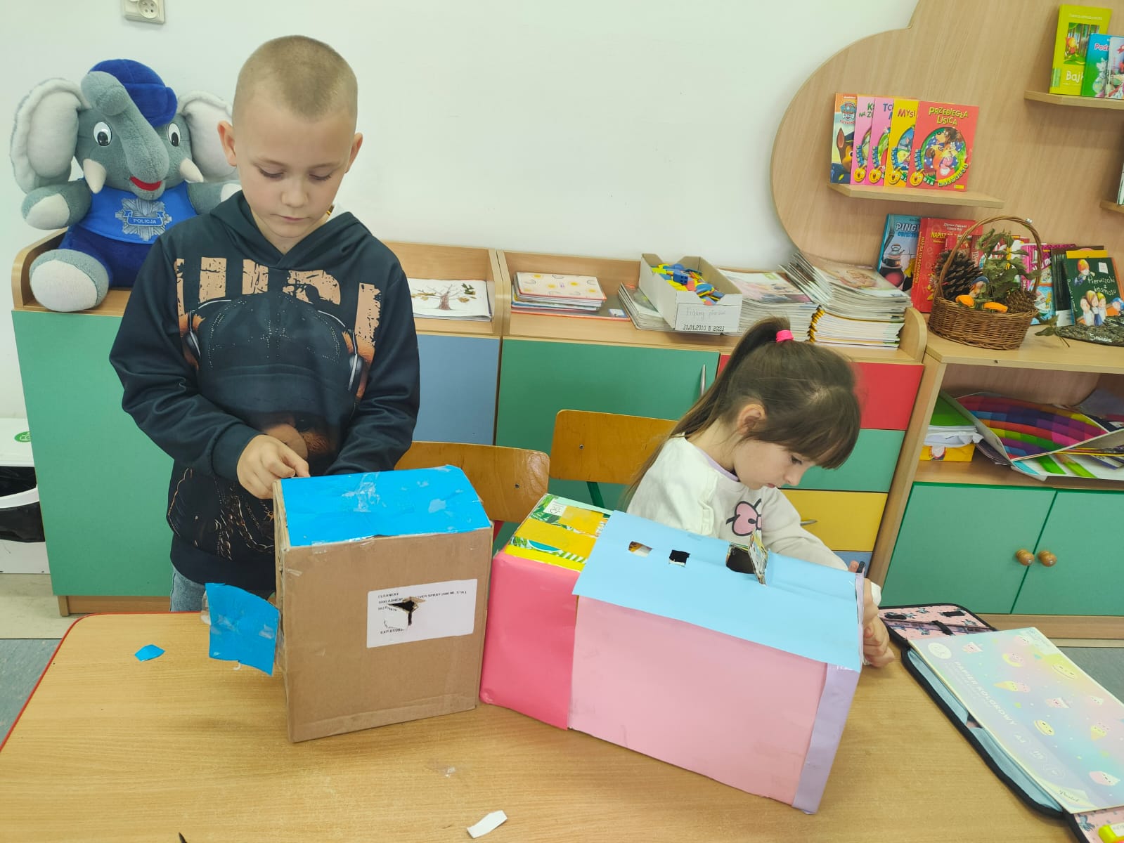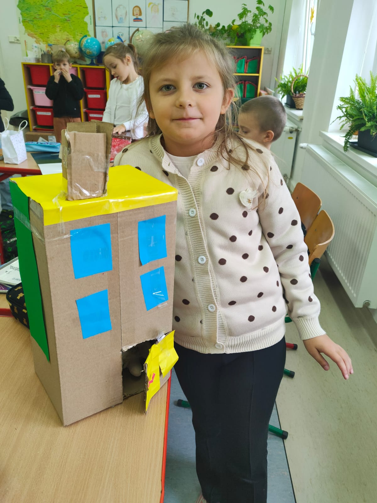 Dzieci opowiadały o tym, czym jest dla nich dom, co sprawia, że czujemy się w nim bezpiecznie i szczęśliwie, a następnie przystąpiły do pracy plastyczno-technicznej. Z tektury, papieru i kolorowych materiałów powstały pomysłowe budowle: przytulne chatki, małe domki, futurystyczne wieżowce, a nawet bajkowe zamki.