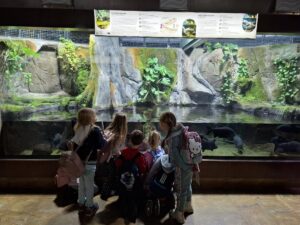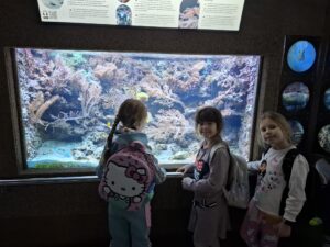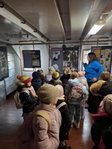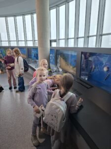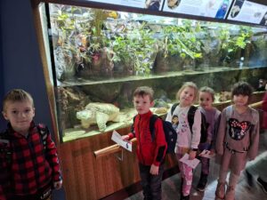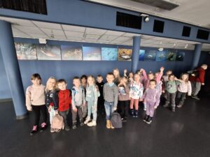 Dnia 25.11.2025 roku dzieci z oddziału przedszkolnego wybrały się na niezwykle ciekawą wycieczkę do Gdyni. Pierwszym punktem programu było Akwarium Gdyńskie, gdzie przedszkolaki mogły z bliska zobaczyć różnorodne gatunki ryb, koralowców i innych morskich stworzeń. Największe wrażenie zrobiły na nich barwne ryby tropikalne oraz ogromne akwaria przedstawiające życie w Bałtyku i ciepłych morzach świata. Dzieci z zainteresowaniem słuchały ciekawostek o wodnych organizmach i chętnie zadawały pytania.