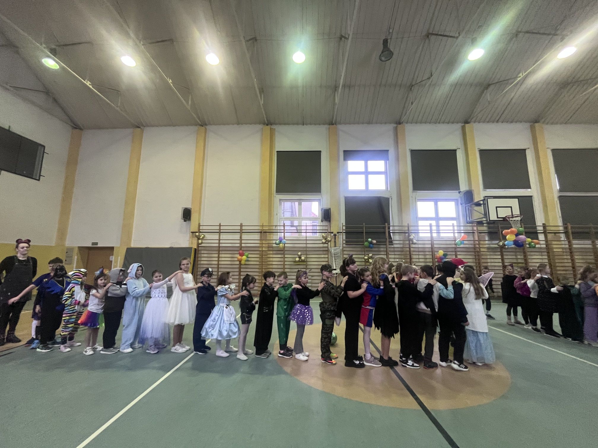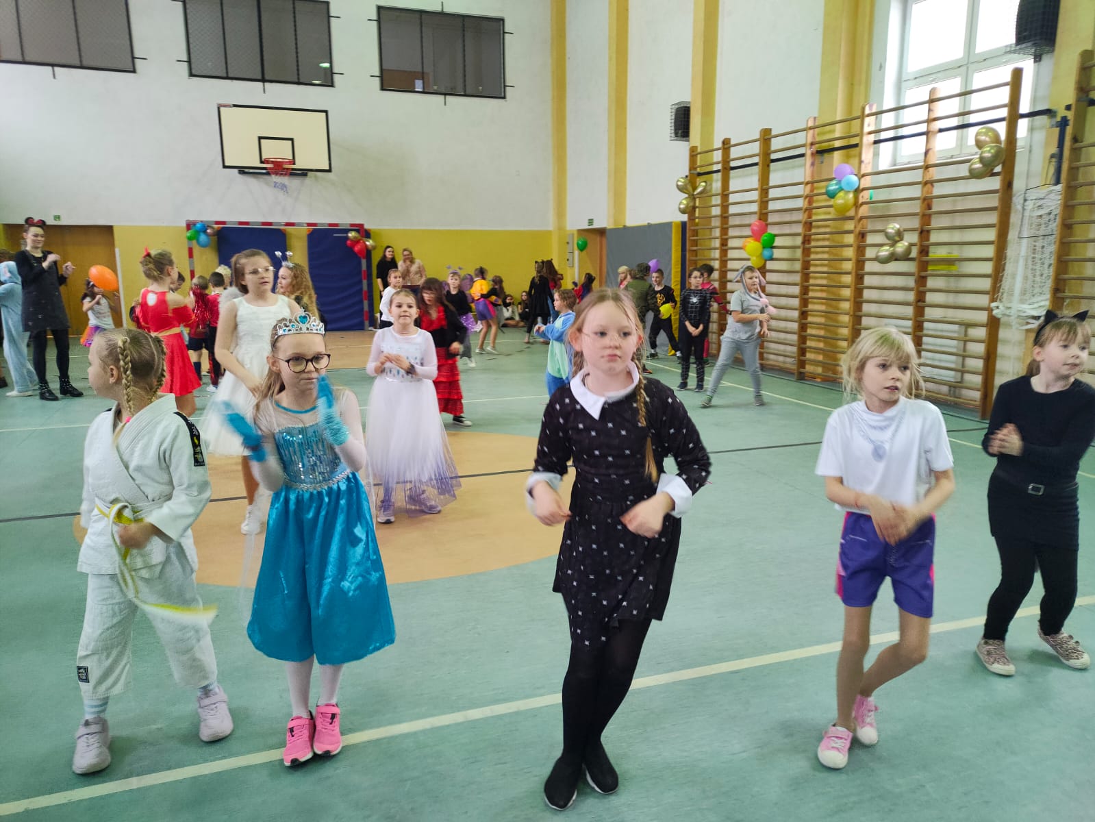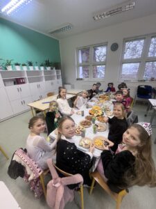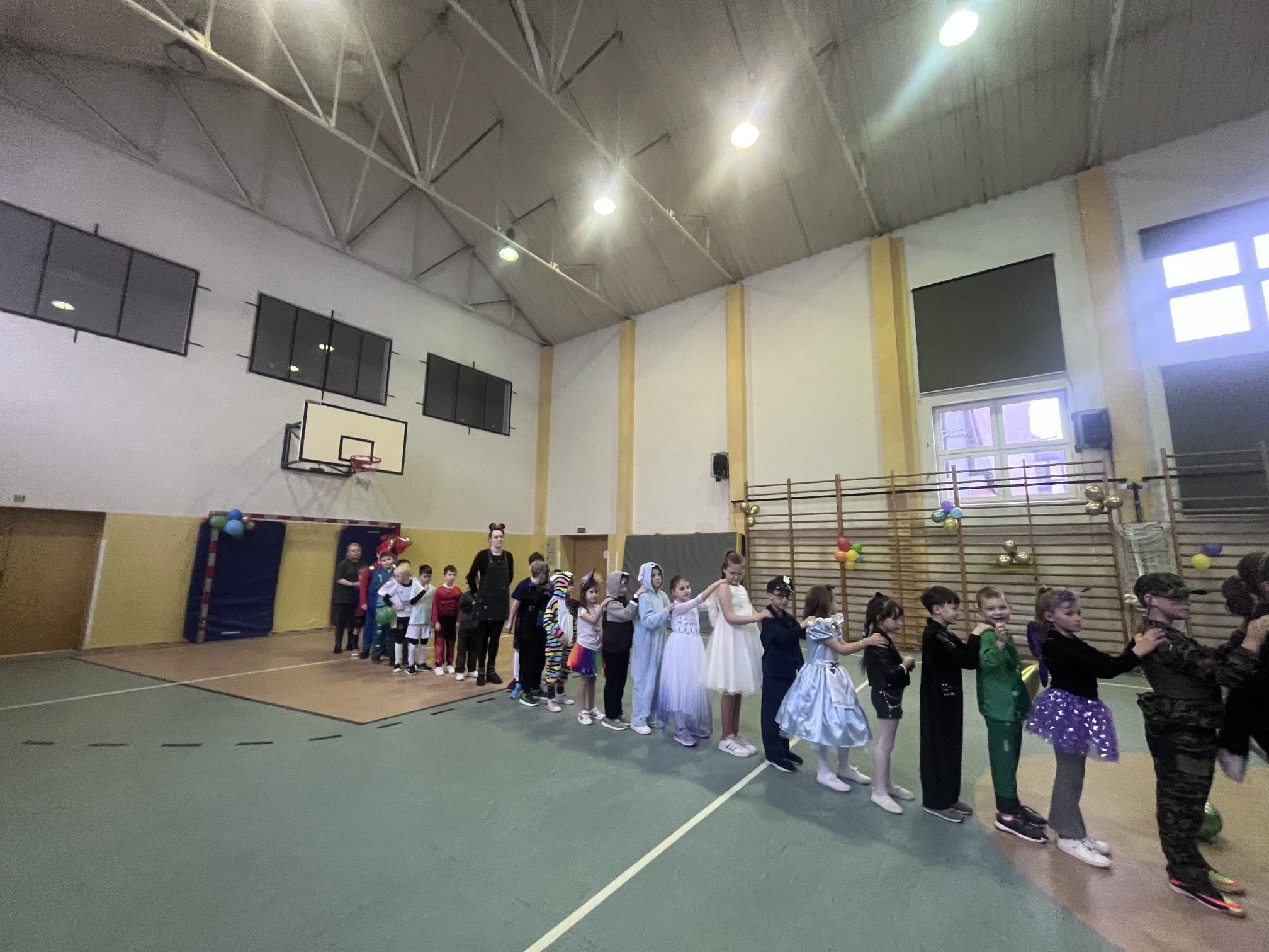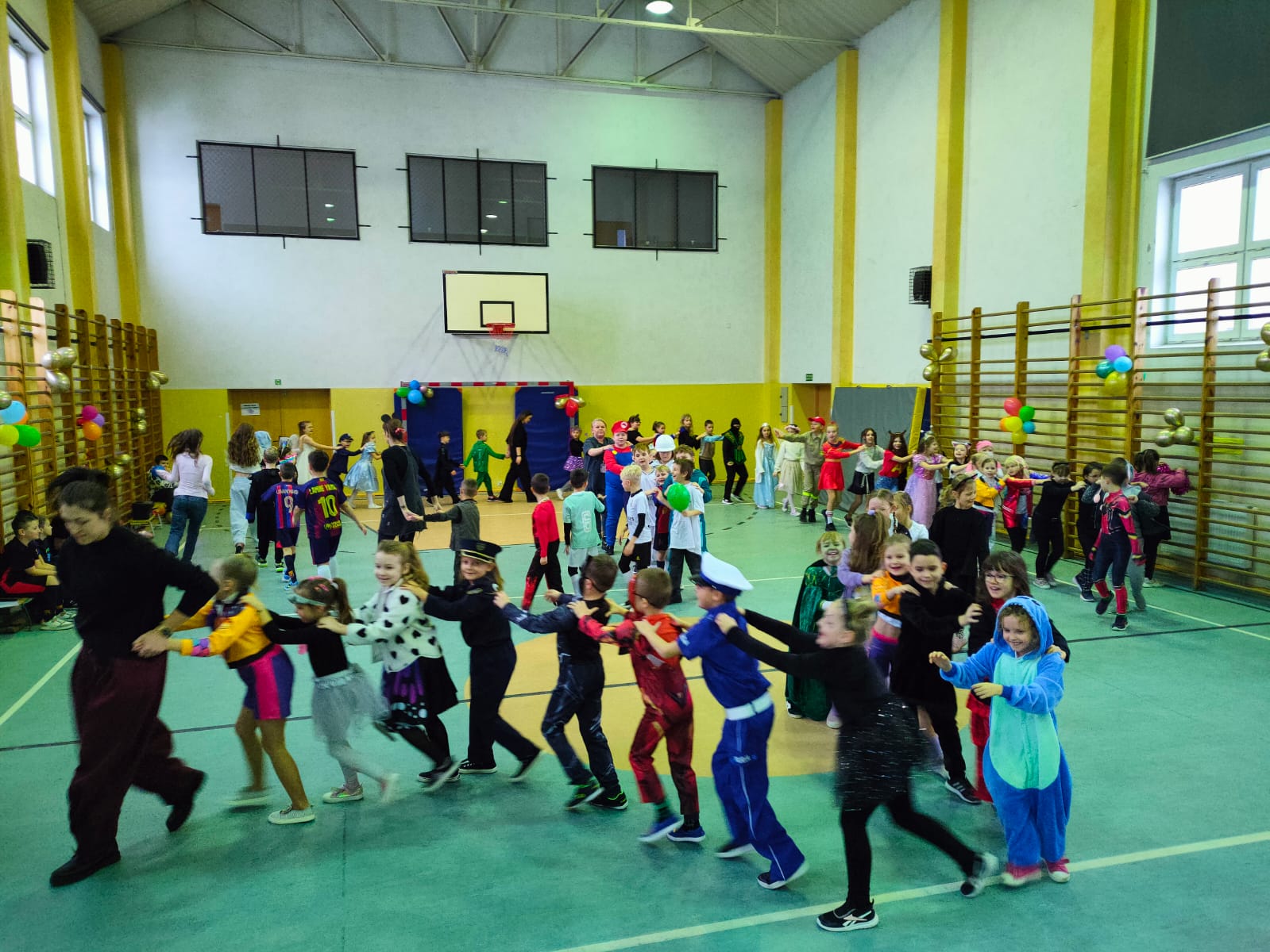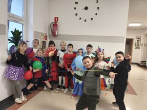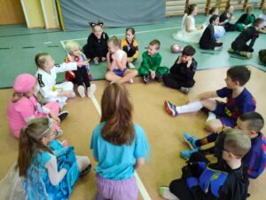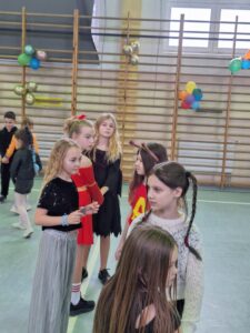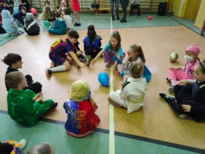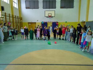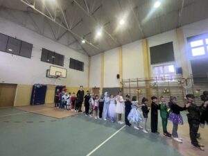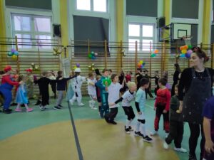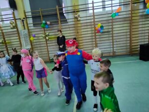 16 stycznia w naszej szkole zapanowała prawdziwie karnawałowa atmosfera! Tego dnia uczniowie klas I–III wzięli udział w radosnym Balu Karnawałowym, który na długo pozostanie w ich pamięci. Sala gimnastyczna zamieniła się w kolorową krainę pełną muzyki, tańca i uśmiechu. Dzieci zachwyciły wszystkich pomysłowymi i barwnymi strojami – wśród uczestników nie zabrakło księżniczek, superbohaterów, zwierzątek oraz postaci z bajek. Wspólne tańce, konkursy i zabawy animacyjne dostarczyły mnóstwo radości i pozytywnej energii. Śmiech i dobra zabawa towarzyszyły nam od pierwszych do ostatnich minut balu. Bal karnawałowy był doskonałą okazją do integracji, rozwijania kreatywności oraz wspólnego świętowania w miłej atmosferze. Serdecznie dziękujemy Rodzicom za dostarczenie przekąsek, natomiast Lenie Piontke, Lenie Muza i Michalinie Gojke za prowadzenie animacji i zabaw z zaangażowaniem oraz kreatywnością.