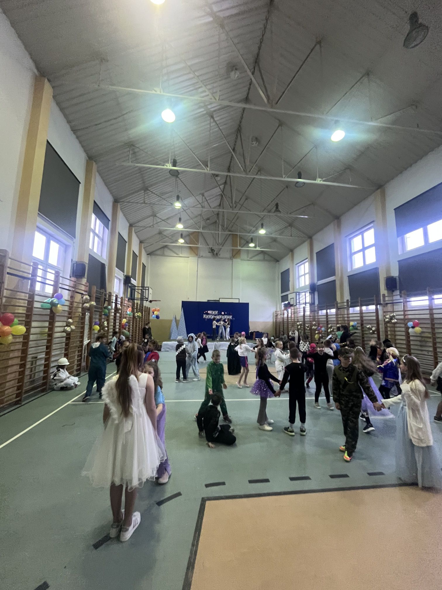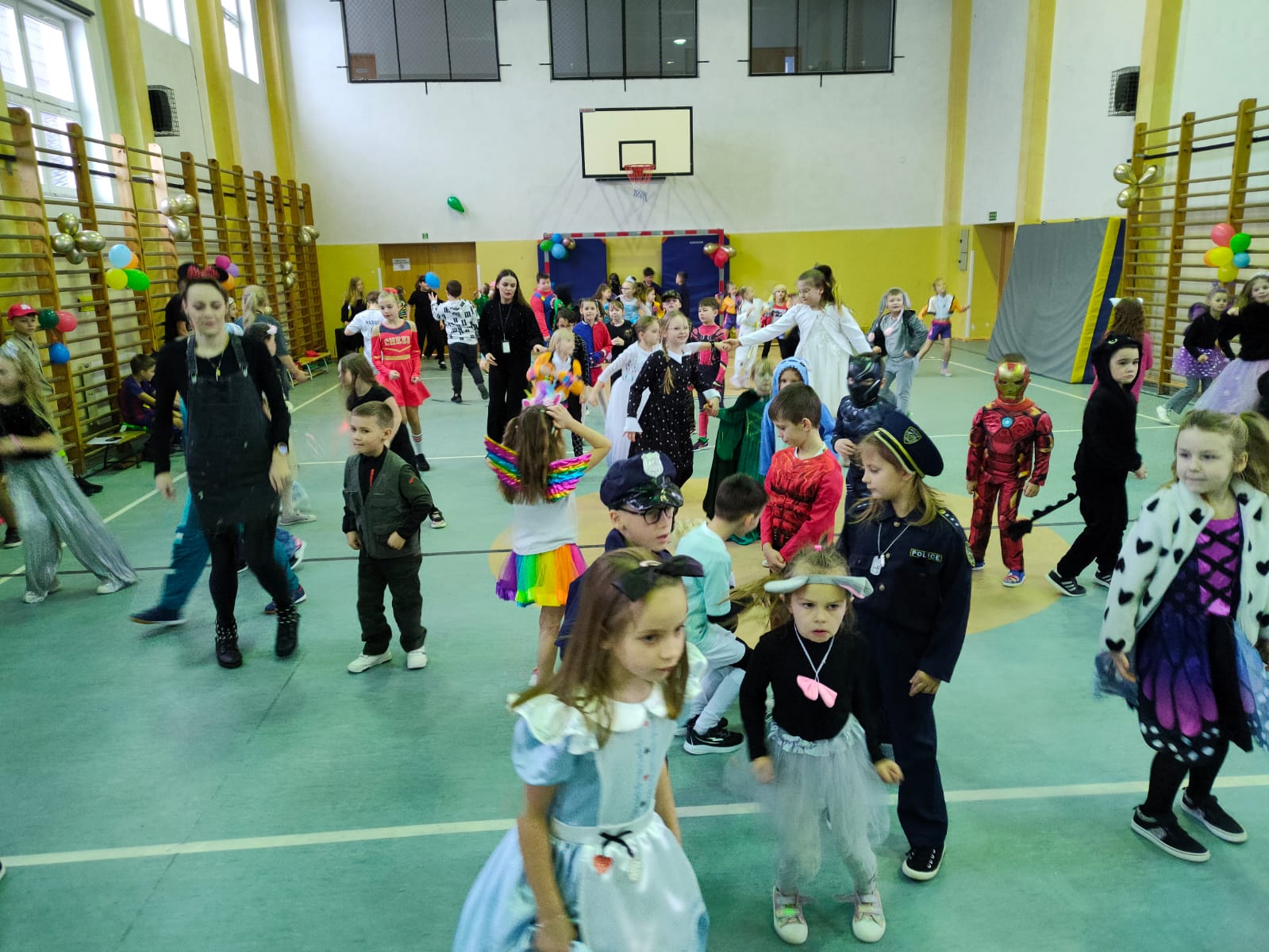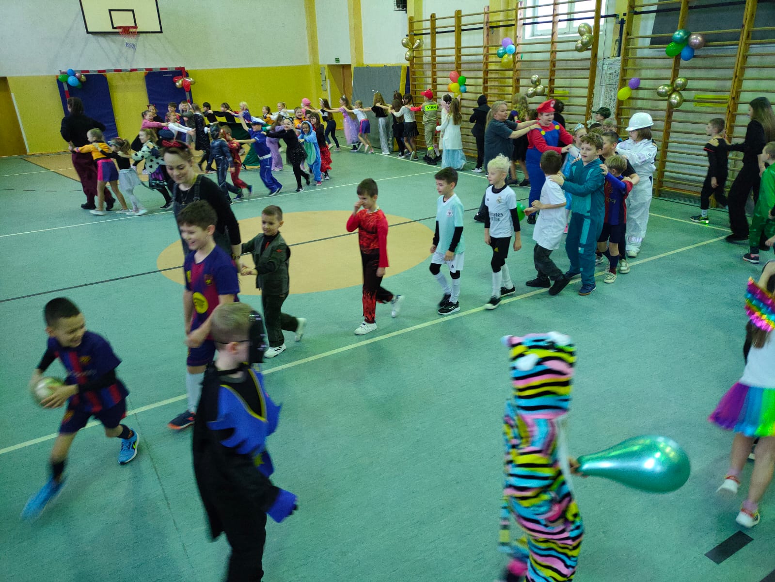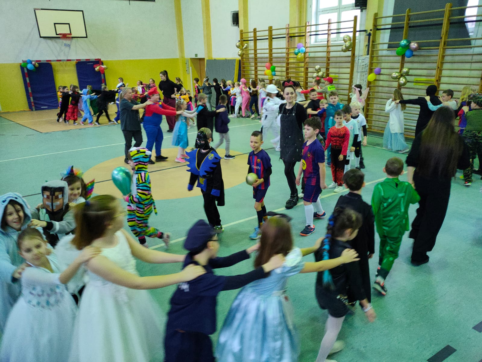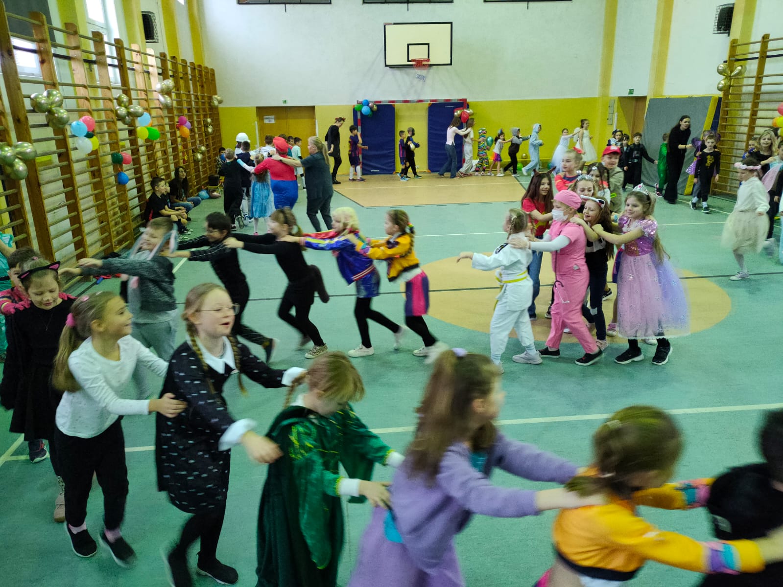 16 stycznia w naszej szkole zapanowała prawdziwie karnawałowa atmosfera! Tego dnia uczniowie klas I–III wzięli udział w radosnym Balu Karnawałowym, który na długo pozostanie w ich pamięci. Sala gimnastyczna zamieniła się w kolorową krainę pełną muzyki, tańca i uśmiechu. Dzieci zachwyciły wszystkich pomysłowymi i barwnymi strojami – wśród uczestników nie zabrakło księżniczek, superbohaterów, zwierzątek oraz postaci z bajek. Wspólne tańce, konkursy i zabawy animacyjne dostarczyły mnóstwo radości i pozytywnej energii. Śmiech i dobra zabawa towarzyszyły nam od pierwszych do ostatnich minut balu. Bal karnawałowy był doskonałą okazją do integracji, rozwijania kreatywności oraz wspólnego świętowania w miłej atmosferze. Serdecznie dziękujemy Rodzicom za dostarczenie przekąsek, natomiast Lenie Piontke, Lenie Muza i Michalinie Gojke za prowadzenie animacji i zabaw z zaangażowaniem oraz kreatywnością.