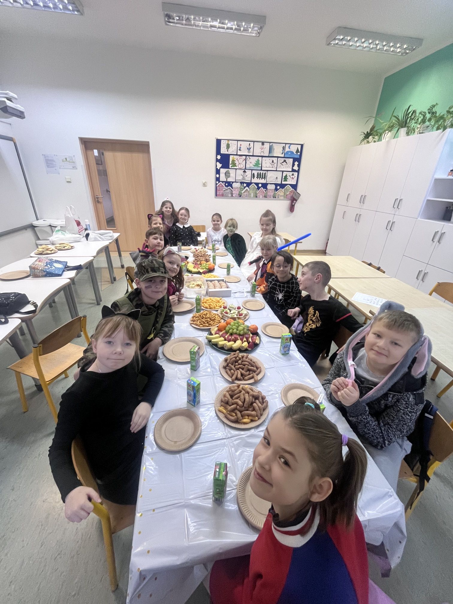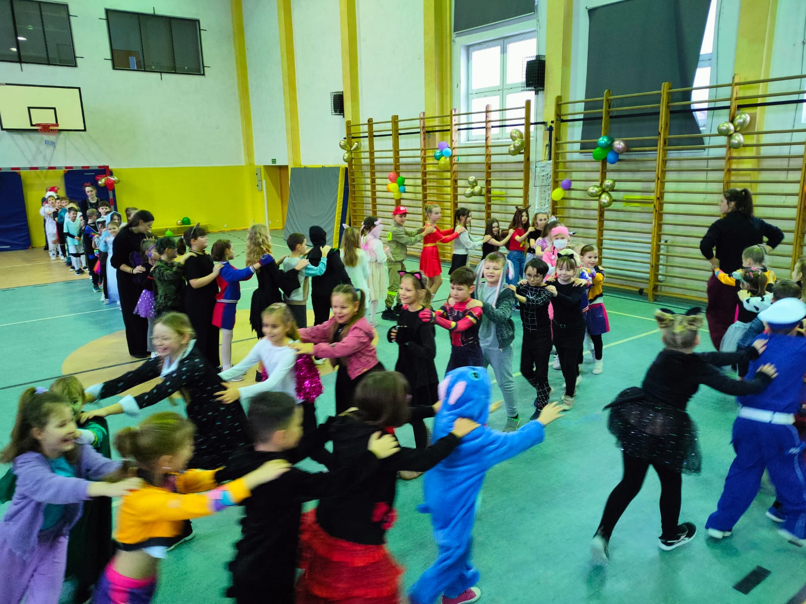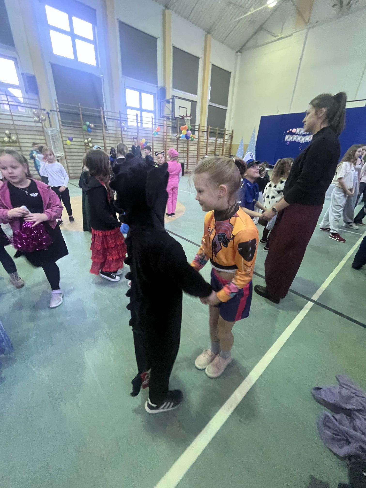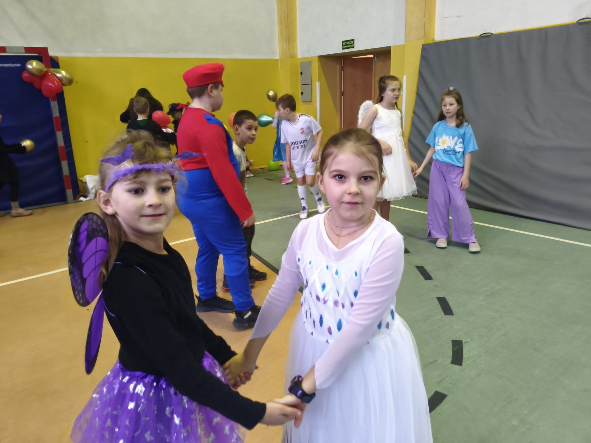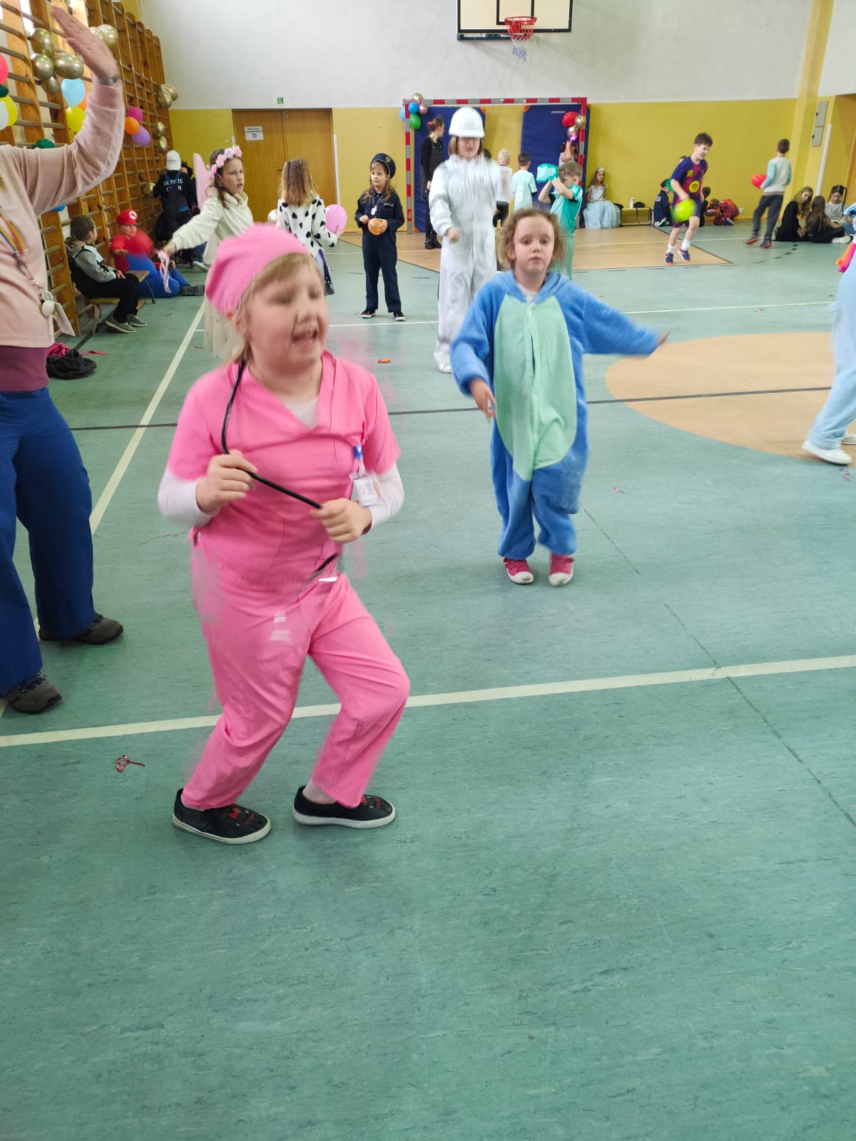 16 stycznia w naszej szkole zapanowała prawdziwie karnawałowa atmosfera! Tego dnia uczniowie klas I–III wzięli udział w radosnym Balu Karnawałowym, który na długo pozostanie w ich pamięci. Sala gimnastyczna zamieniła się w kolorową krainę pełną muzyki, tańca i uśmiechu. Dzieci zachwyciły wszystkich pomysłowymi i barwnymi strojami – wśród uczestników nie zabrakło księżniczek, superbohaterów, zwierzątek oraz postaci z bajek. Wspólne tańce, konkursy i zabawy animacyjne dostarczyły mnóstwo radości i pozytywnej energii. Śmiech i dobra zabawa towarzyszyły nam od pierwszych do ostatnich minut balu. Bal karnawałowy był doskonałą okazją do integracji, rozwijania kreatywności oraz wspólnego świętowania w miłej atmosferze. Serdecznie dziękujemy Rodzicom za dostarczenie przekąsek, natomiast Lenie Piontke, Lenie Muza i Michalinie Gojke za prowadzenie animacji i zabaw z zaangażowaniem oraz kreatywnością.