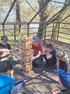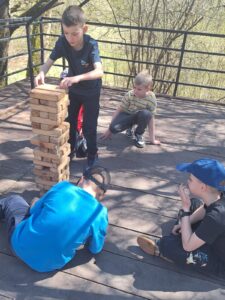 W dniach 21 i 22 kwietnia uczniowie klas 2b i 3 uczestniczyli w dwudniowej wycieczce do Przystanku Drzewina. Pobyt obfitował w liczne atrakcje, które sprzyjały integracji oraz aktywnemu spędzaniu czasu. Uczniowie brali udział w grach i zabawach zespołowych, a także w popularnych grach KINGSIZE, takich jak Mega Jenga, Twister, wielkoformatowe puzzle. Nie zabrakło również zajęć terenowych – uczestnicy sprawdzali swoje umiejętności podczas zabawy na orientację z wykorzystaniem mapy i kompasu oraz w trakcie emocjonujących nocnych podchodów, które dostarczyły wielu wrażeń i nuty przygody.